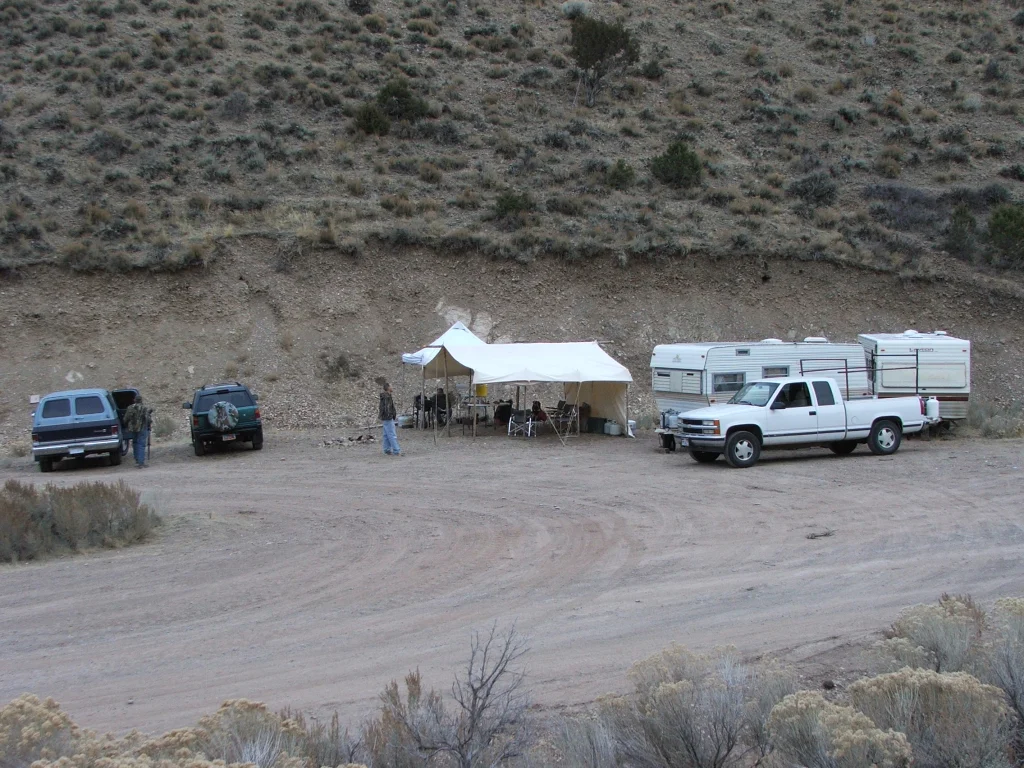 The tow truck driver came and picked up Ducks truck and headed down the road. Meanwhile Duck went back home (with the tow truck driver) and got his Isuzu Rodeo. We hooked Trackers Suburban up to Hunters trailer and off to the Crawfords we went. Hunter came up in his Montero later that night. While we were doing all of that, over and up Logan Canyon was traveling Wapiti Dung, Softball, Kyle and Edjukateer. They were pulling Wapitis trailer and making good time. We all met at the pre-determined destination in the Crawfords almost at the same time, give or take a couple of hours.