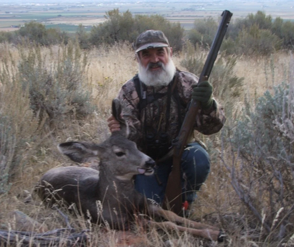 I moved to my left about 20 yards and there they were moving up the hill. More were coming in behind the first group. A total of about 15 were bounding and hopping up the hill. Finally a medium sized doe stopped about 20 yards out and looked behind her self at some of the deer still crossing the flat of the terrace. I settled the sights on her shoulder and let it fly. Of course she turned downhill and folded about 100 yards from where she was.