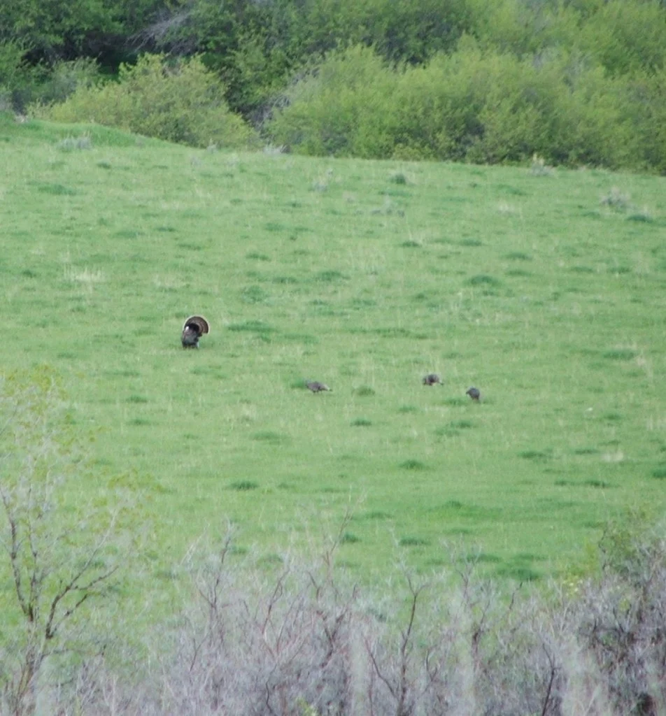 I loved being a spotter. The guide and his young hunter soon arrived and took up a vantage point in which to “hopefully” bag this bad boy gobbler. They snuck in quite well, set up and waited patiently. This was the scene as it unfolded.