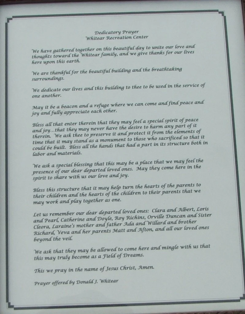 As I toured Wapiti around the establishment, I could not help but notice the dedicatory prayer which was typed and framed on the wall of the building.