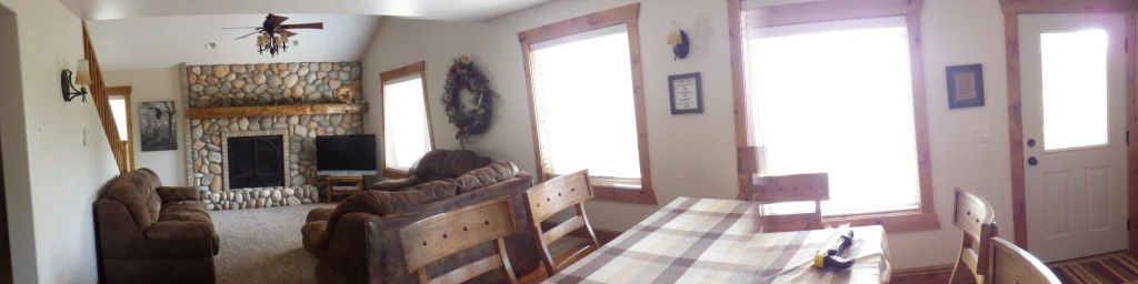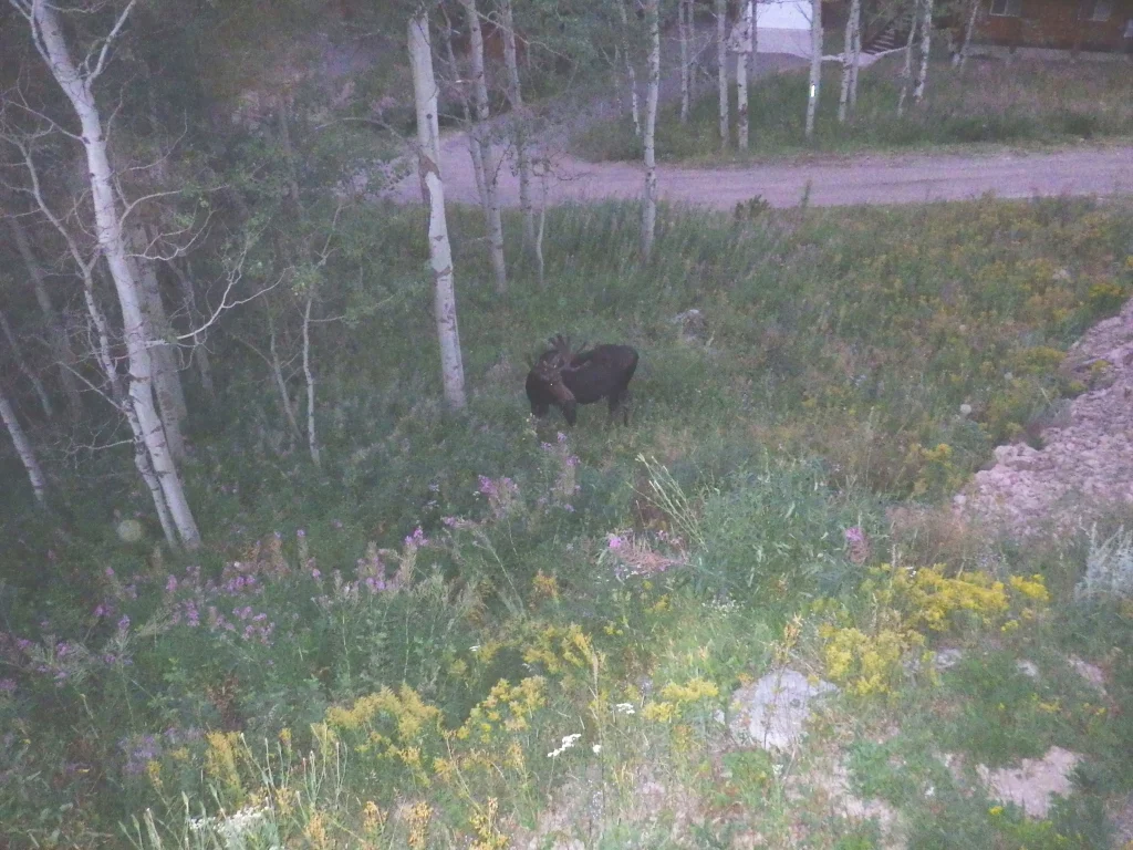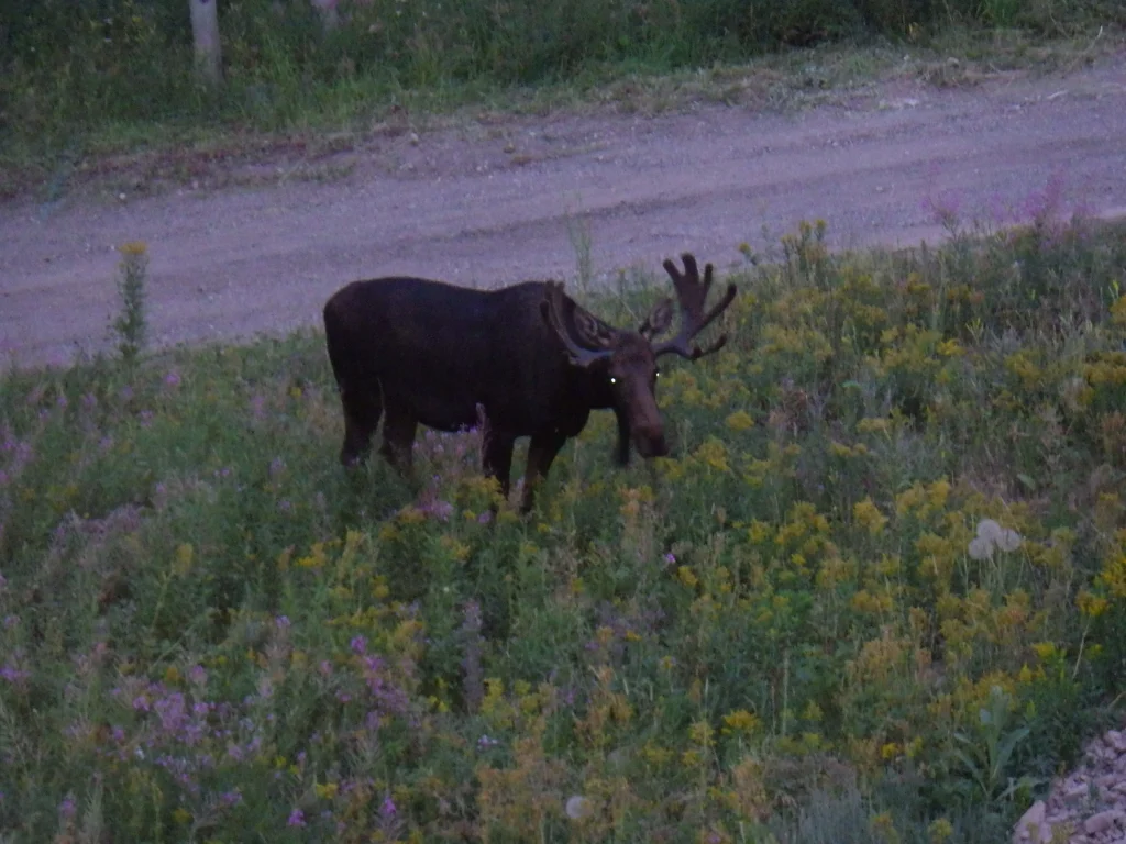 At first it seemed pricey, but once you figured alternative sleeping arrangements say at a campground or motel, it was actually quite a bargain. A very comfortable place with two balconies to sit and watch the wildlife and weather from. On our second morning there, Sherry and I were up getting breakfast ready for the group and Sydnie got up because she was not sleeping very well. She went out on the lower balcony and came right back in telling me in a very quiet voice we had a moose visitor!