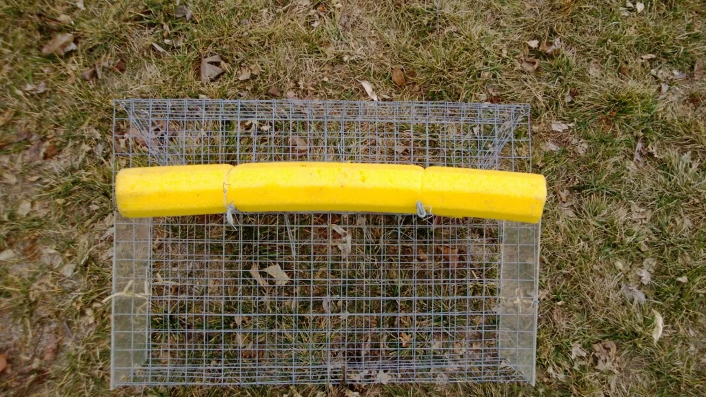 You have to understand this pond…it’s not very big, maybe 3/4 acre in size, but it is completely encircled with tumble weeds that have blown into it…all around the edges. It is also very deep, with steep sides, because of last summers dredging work. Yes, there are some weeds, toolies and other water type plants growing in and around the pond, but it is not easy to find places to set traps.