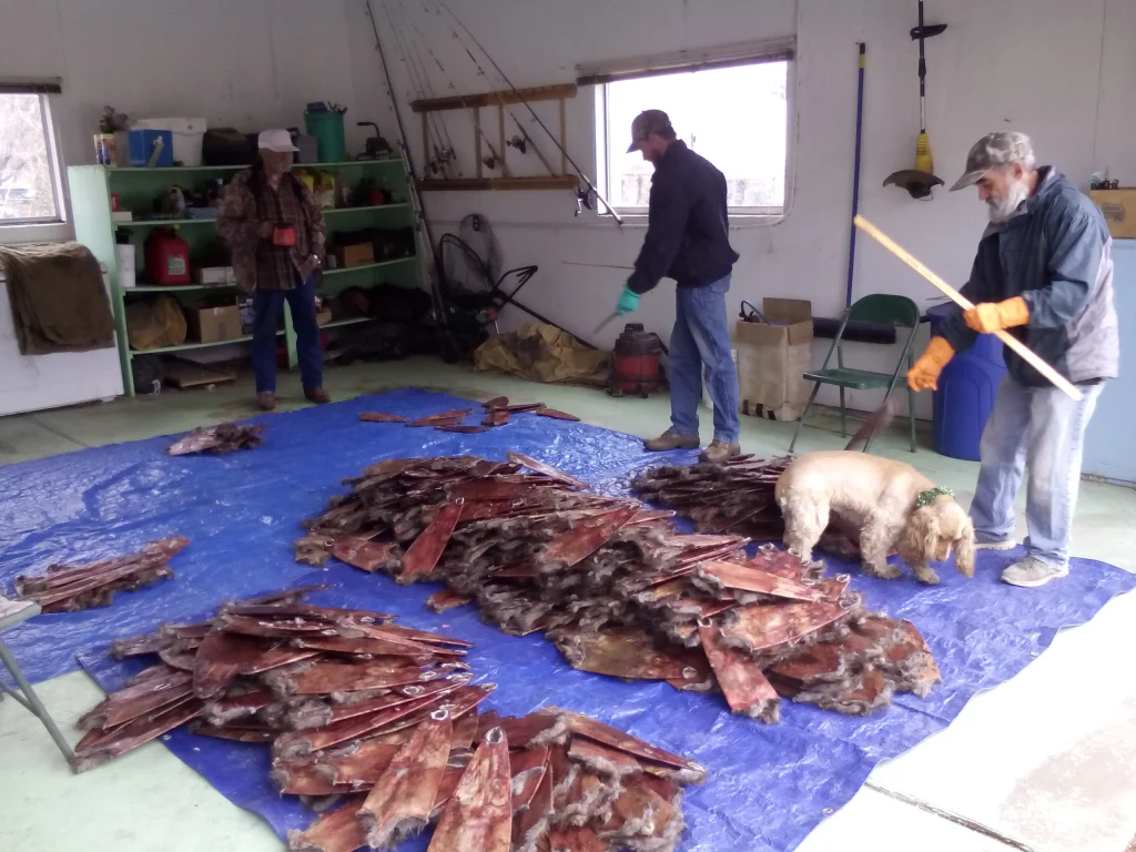 This picture is one that Reed took with his smart phone while we were grading our rats by size. It becomes obvious it takes a lot of people to make short work of a project of this size. Can you imagine being at the auction warehouse where they are dealing with hundreds of thousands of furs from all over the country. Grading, sorting, inspecting and trying to keep them all organized by “ownership”….I’d like to go see that sometime.