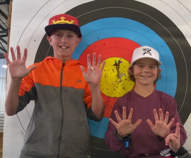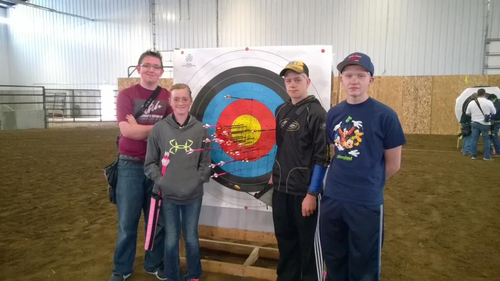 I only know Conner in this picture, he is the young man on the left in blue, but take a look at that grouping of arrows! These four young adults are going to be shooting like those 10 and X ring shooters VERY SOON! I was impressed with these four and their abilities to place their arrows in and around the 10 ring! Good going guys (and gal)! Guys is my way of including both sexes!