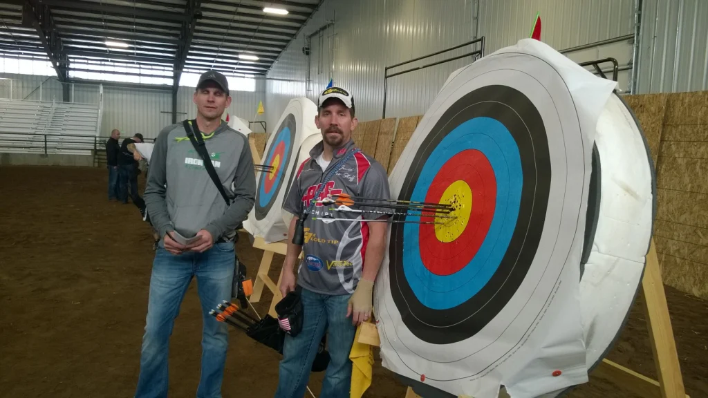 Well, the shooting started promptly at 9 a.m. and it’s a good thing too. There were 90 arrows to be shot by each shooter and that takes time! Yesterday was especially tough as the arrow stops (bunks as I call them) didn’t want to let the arrows go once the arrow was stuck in them. Arrow pullers were used throughout the day. Most of the shooters shoot fast, flat shooting bows and arrows that are tuned perfectly to fly straight and true. When that combination is put to use, the arrow hits the target and the backing and drives on into it creating a lot of friction and heat. The make up of the bunk melts onto the arrow shaft and that is what causes the arrow to be sooooo very hard to pull out.