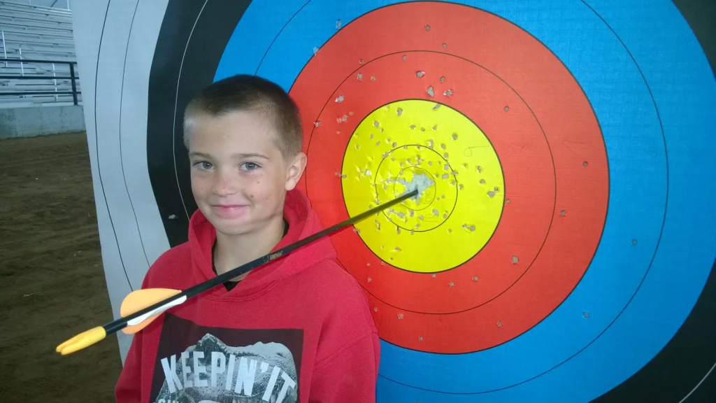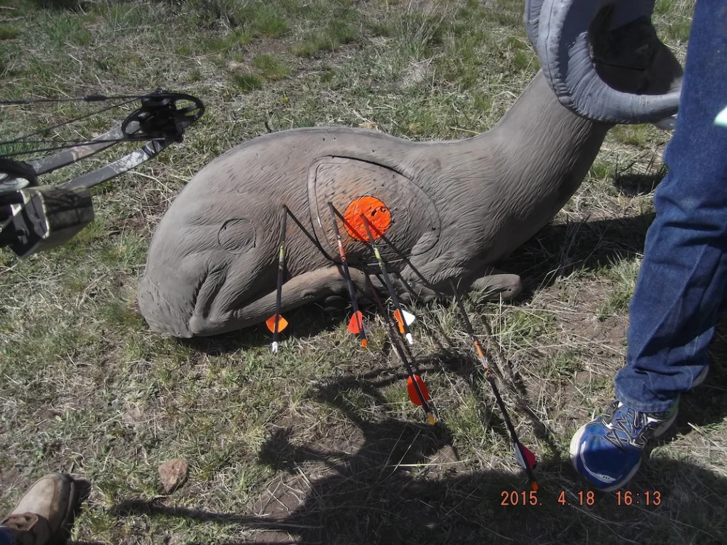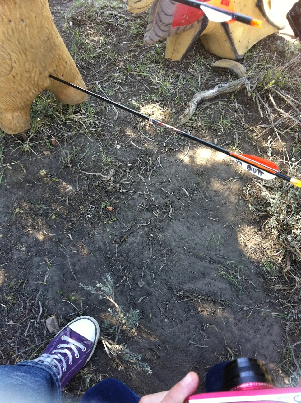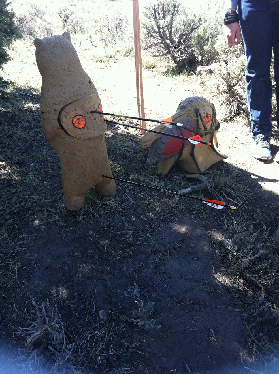Look closely folks, those are two separate targets with clusters of arrows all in the 10 rings and X rings! Absolutely impressive shooting! With me, I like to use up the whole target and not discriminate between the different colors. I even like to hit around the target, like in the ground and into the arrow stopping wood. I’m a nice guy that way.