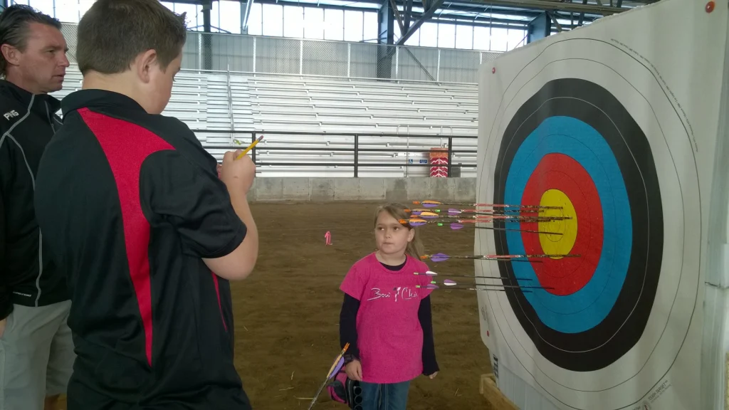 As could be expected the 9 a.m. line didn’t have a whole lot of shooters. Heck, who wants to get up early on a Saturday anyway? I didn’t get any pictures of that line, but I counted about 17 shooters including some very young ones. I have to say, the young shooters are pretty dang serious when it comes to flinging arrows at targets! Congratulations kids!