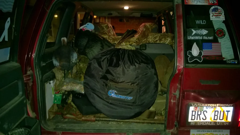 Weasel, Hot Spark and I are going back to try and intercept them. Weasel posted another movie from his trail camera which showed them buggers about 20 yards from where I was sitting, so we know they like that meadow. Rather than going back to my old blind, I’m going to once again set up where I did yesterday, in hopes they do something different than they did. The little buggers had me going yesterday….the nerve….walking right past my other blind! OOOOOOOOOOOOOOOOO!