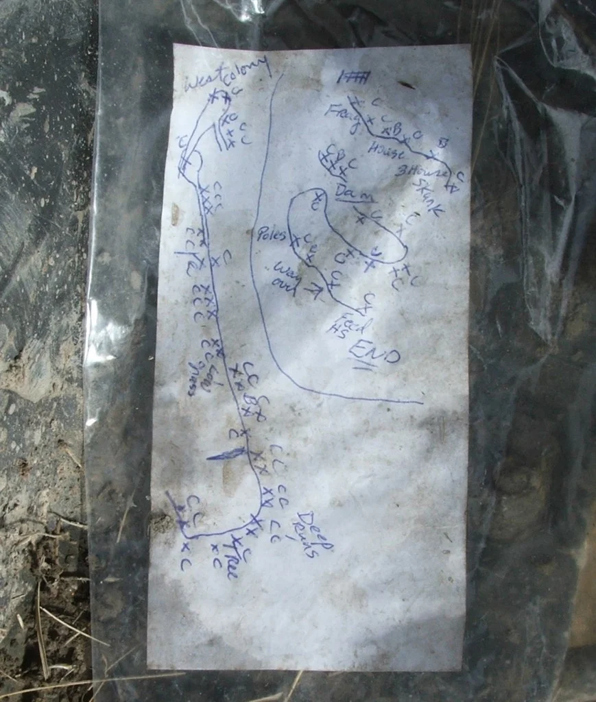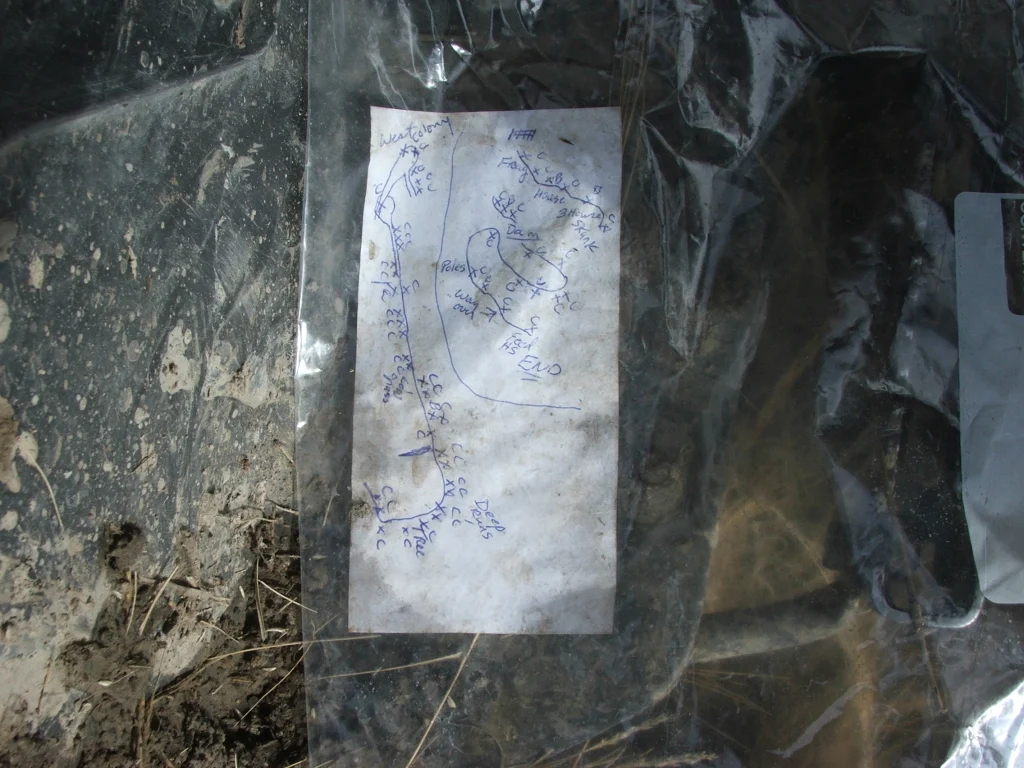 And then I create a general map of the entire line of traps, so I know where to go to find the next flag. Often times I will have two to five traps within a short distance of each other. And then I might travel 50 to 100 yards down the stream or out into the swamp to set another series of traps. My map keeps me on track and hints on the map keep me knowing I am in the right place on the map.