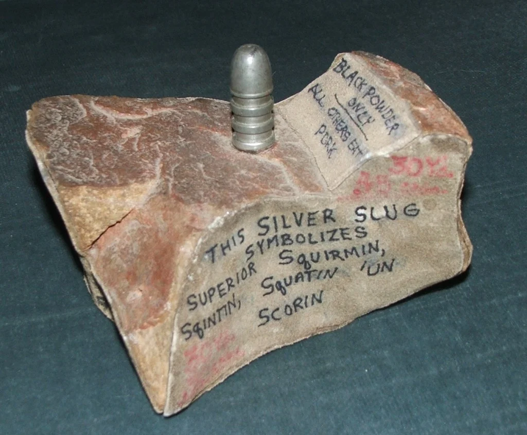 Yessir! “This Silver Slug Symbolizes Superior, Squirmin, Squintin, Squatin and Scorin!” After all is is going to be a travelling award to be held by the best shooter among those who shoot, at whatever is shot at and whenever there is a shoot.