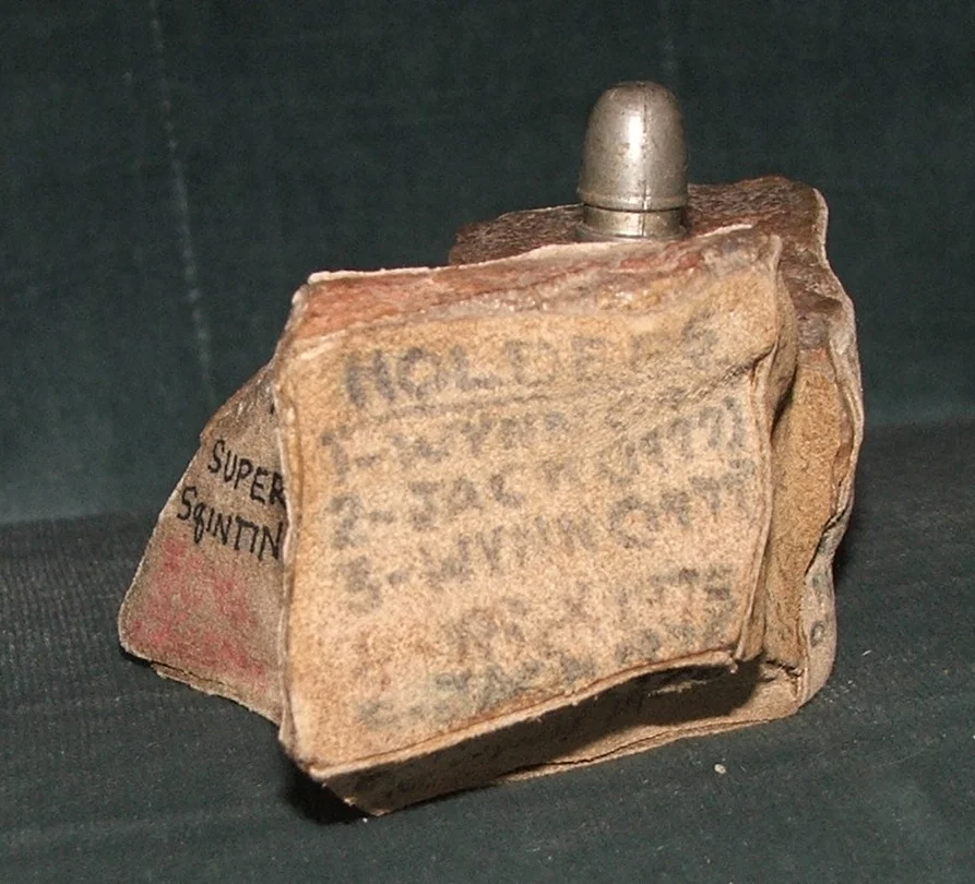 On the back of the rock I wrote a brief about the Silver Bullet and the mold that made it. (I believe Jack “Wapiti Dung” Zundel has that mold in his possession).