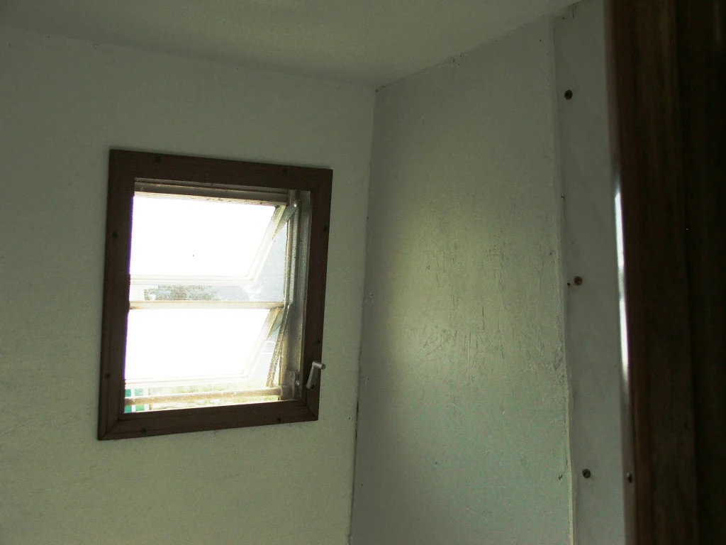 I also cut out the closet so it is one large open area.  Replaced the back wall and ceiling in that area as well, paneled and painted it, added a metal shelf and that area is ready for a test this hunting season.  The paneling was provided by a young lady just down the street who kindly gave me 3 full 4X8 sheets.  I chose to mount them without the finished side out so that the paint would stick to it.