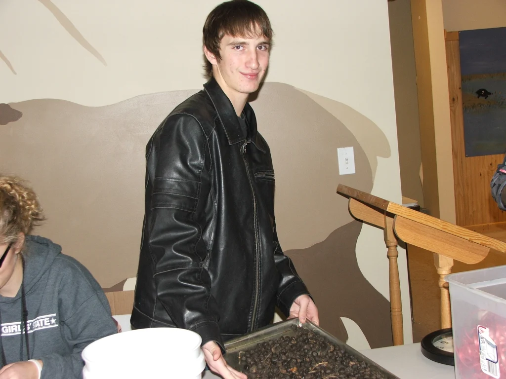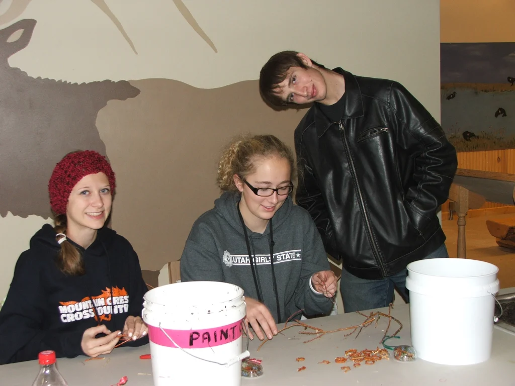 This is part of the Hyrum Youth Group who were there helping people make their own Christmas Ornaments using browse and Other things to fill the clear containers.