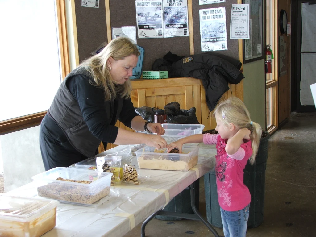 Making bird feeders using pine cones, peanut butter and bird seed! A little messy but again all the kids had fun doing that and taking home their own bird feeder!