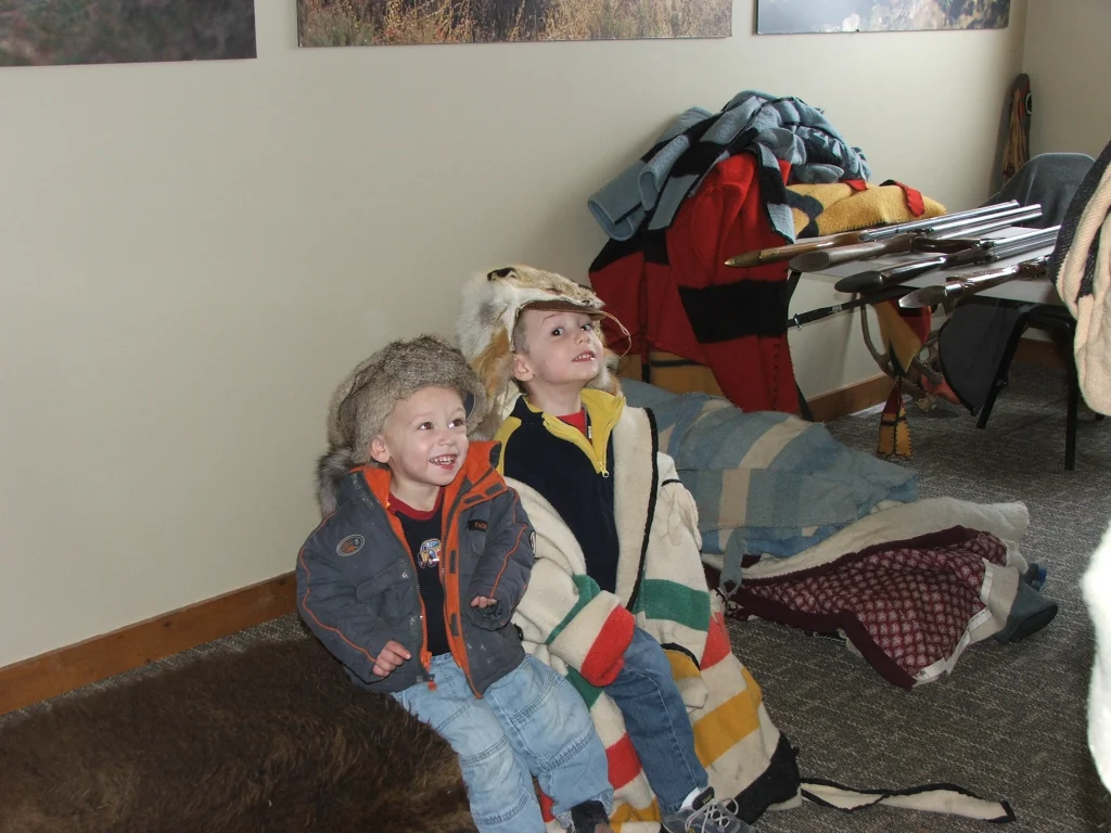 The mountain men also had capotes for folks to put on and have their pictures taken holding a real muzzleloader and wearing authentic fur hats.