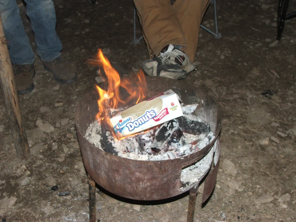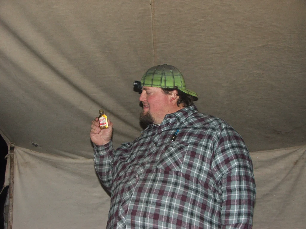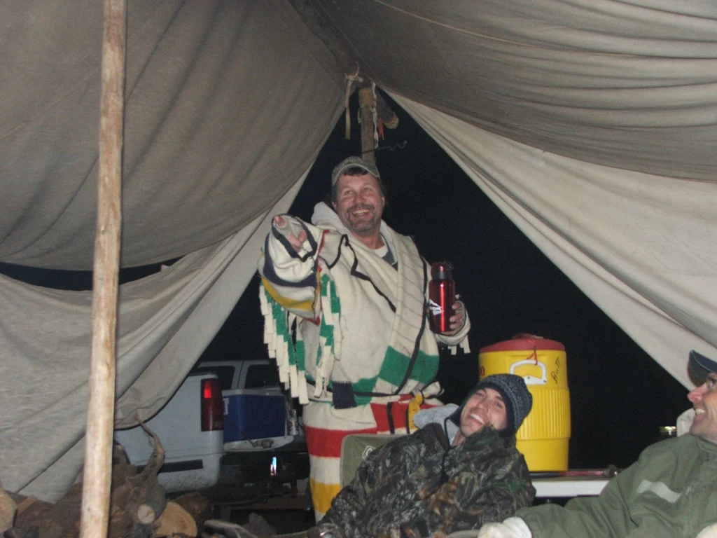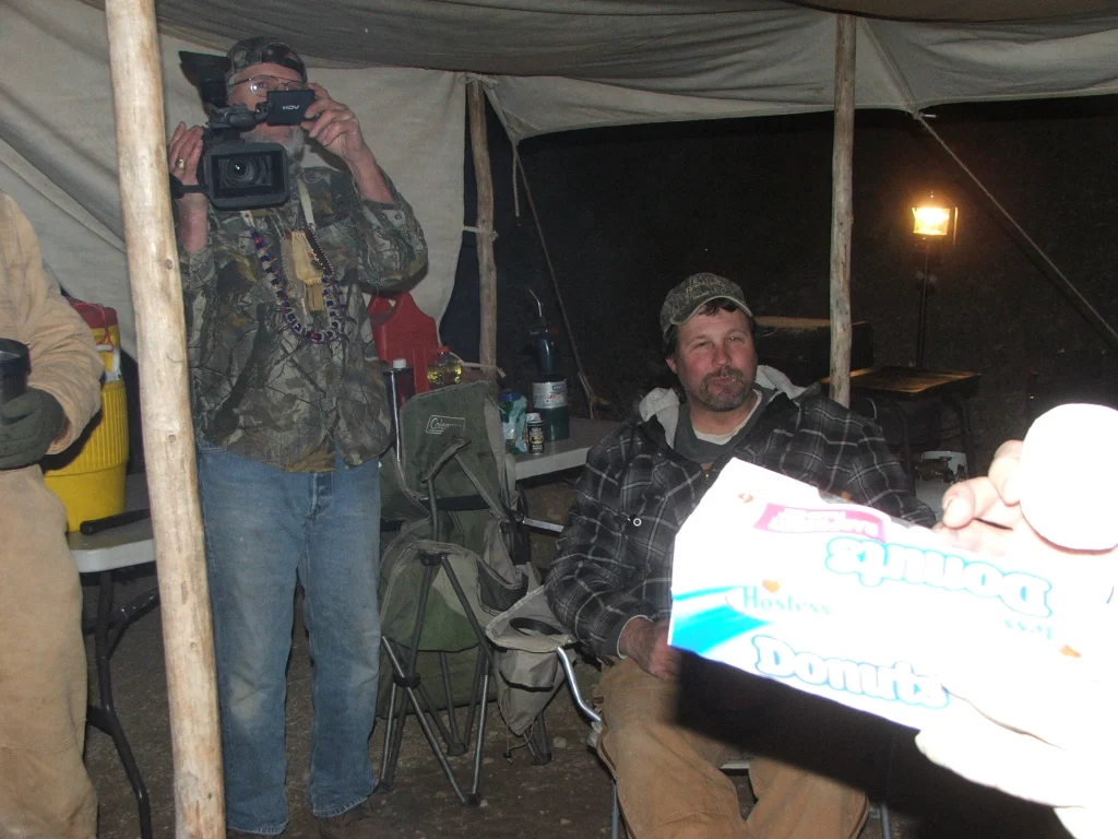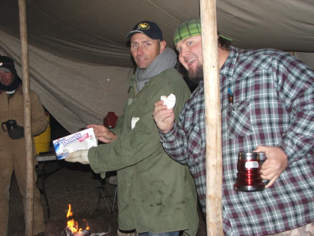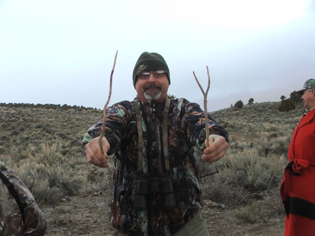 Many years ago on this very same hunt, we stopped for a hot dog cooked over an open fire. We did that at this exact spot and Tracker has saved the cooking sticks that Edjukateer is proudly displaying in this photo. He went out and cut these sticks and we used them to cook our hot dogs that day. He used the long one and I used the two point one. In the process I burnt up a $17 pair of gloves….Edjukateer says “Just get over it”!!!!