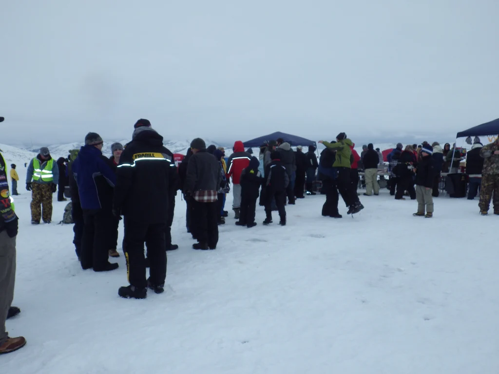 I was given the assignment to meet the bus at the lodge and make sure it had a big enough space to park.  The parking lots were full or filling fast with people coming to the event.  Snowmobiles and ATV’s were zooming in and out and the whole area looked like a snow carnival.  People were hustling in and out of the lodge, buying equipment and/or licenses, renting machines and in general having a wonderful time.