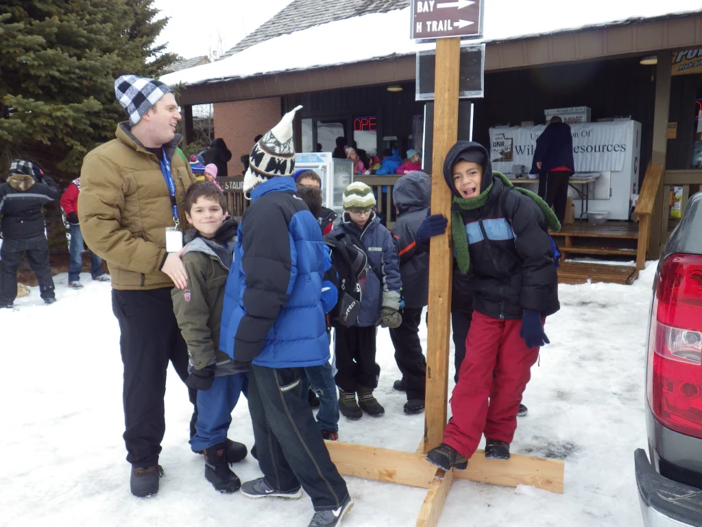 When the announcement came that the DWR was going to demonstrate ice safety and how to save a person who has fallen through the ice, the boys were anxious to go watch it.  Especially since the trip to the demonstration was going to take them right past the hot chocolate.