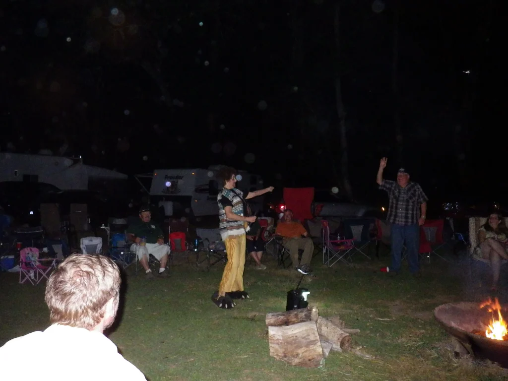There are stories upon stories where so and so was with Colby doing whatever it was and they all involve dangers and fun times, but we have never had the real Colby come to our camp, even after 30 years and so Three Breaks had to make one more visit on this 30th anniversary party night. She did a wonderful job of entertaining us and we laughed and laughed.