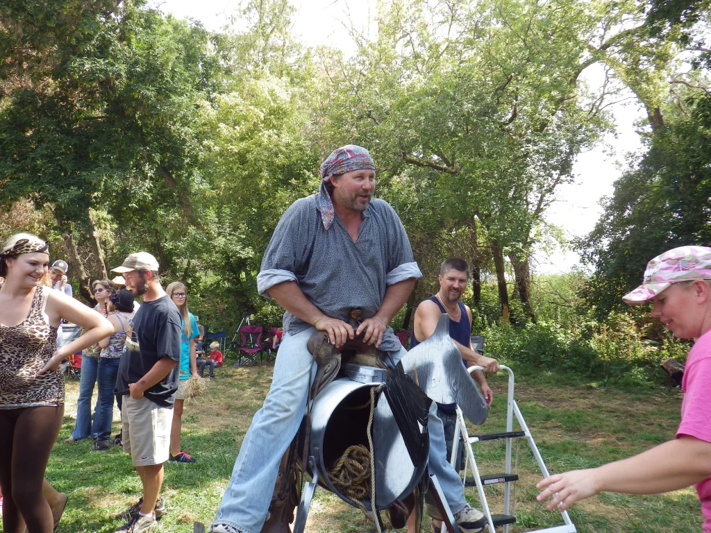 Well, as things were getting set up for the Mountain Man Limpics, the horse did a little bucking and ended up breaking its neck. What we didn’t know at the time was it also broke a couple of legs. This wasn’t found out until Dry Dog mounted up and then the legs began to show their wounds. That part of the game would have to be modified.