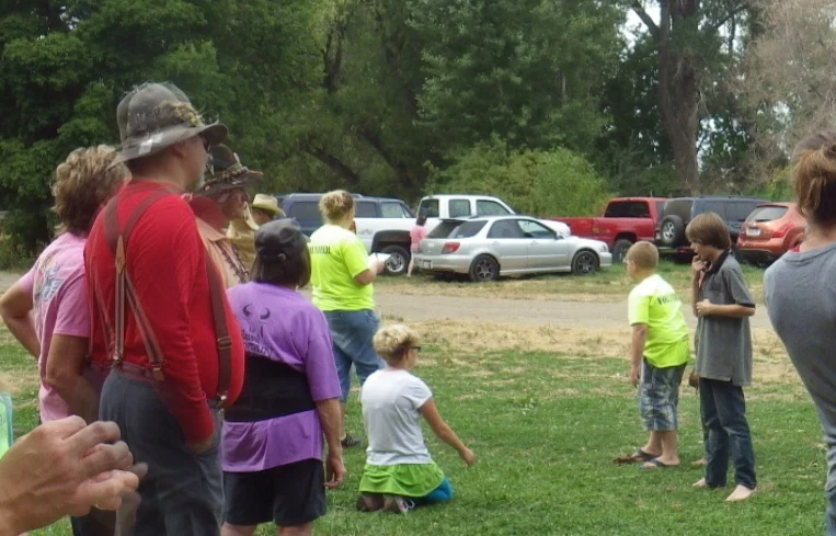 Another event is a buffalo chip throw (actually a plastic frisby that looks like a buffalo chip). This is an accuracy throw where all members toss the frisby toward a pole and then the distance is measured and the team with the least amount of distance wins.