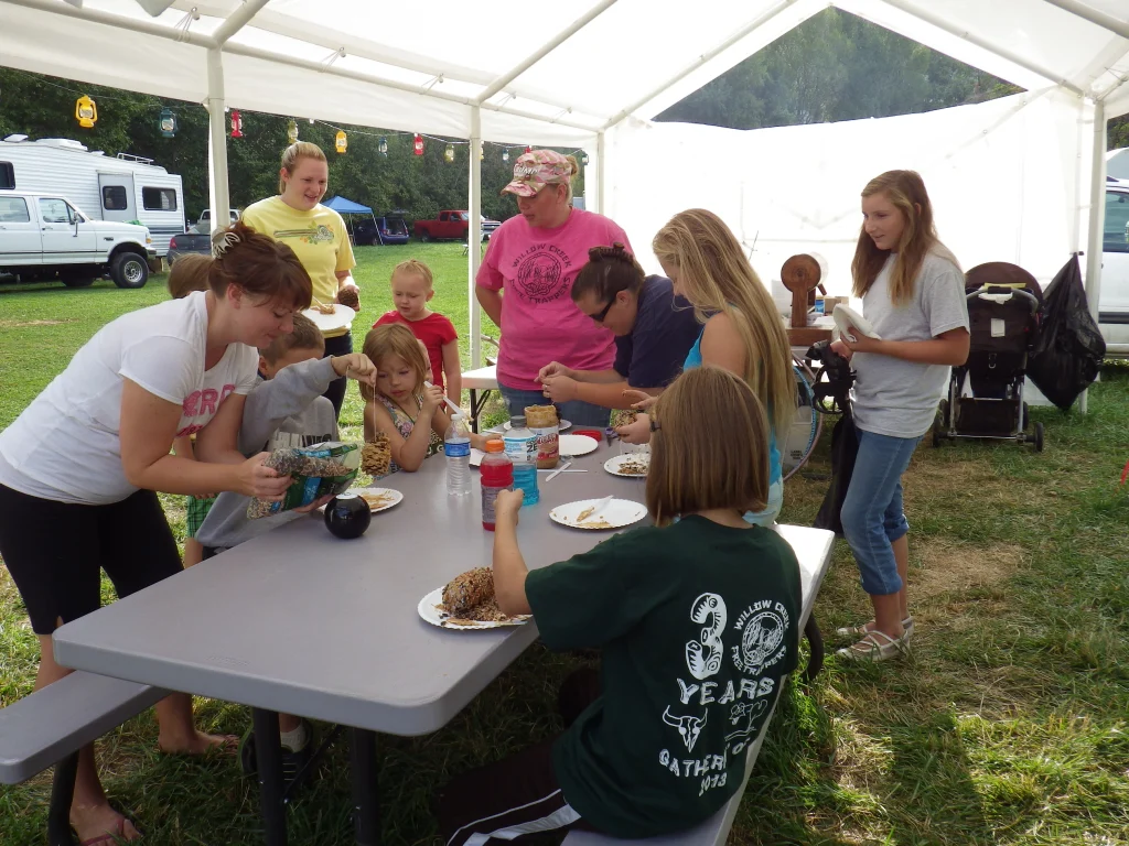 While the shotgun shoot is going on The Misses and the other ladies have big plans for the little ones. They are going to make bird feeders using pine cones, peanut butter and bird seed.