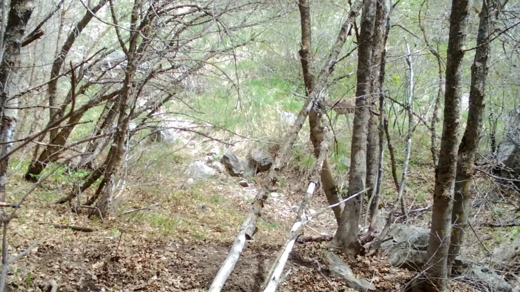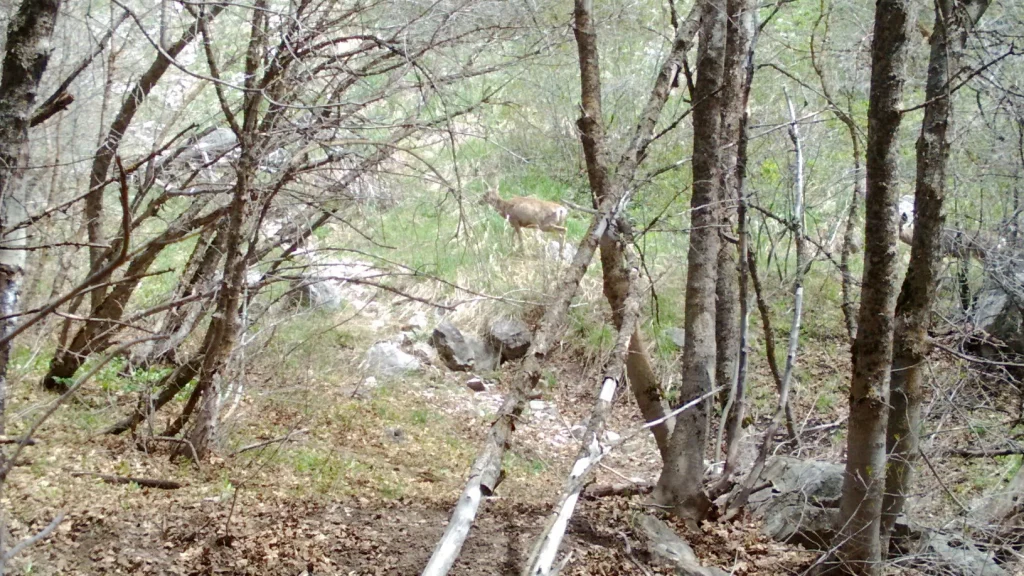 Now a break from a strenuous hike is a good thing, but as we sat there enjoying crackers and Kippers we heard a noise and wondered what it was. It didn’t take long for some critters to come visiting us….Turkeys? No! We wish. So now go back up to the first picture on this post and see if you can see the critters. No going on, until you go back.