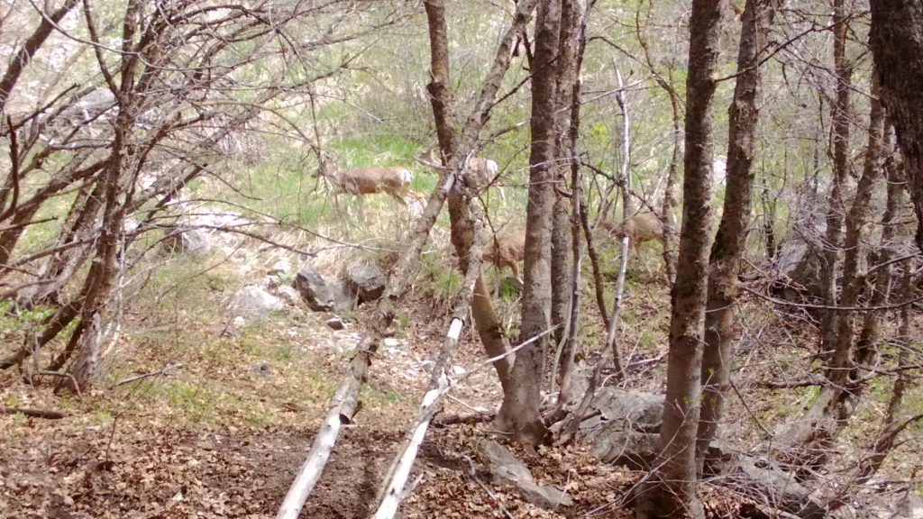 In addition to the turkeys we saw close to 50 deer and one coyote. I kept hoping the coyote would come popping over the ridge into my waiting gun, but it didn’t happen. He was last seen coming my way on a good clip. He needs to die!