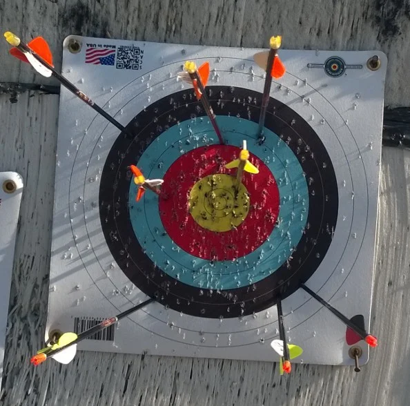 By the time I released the last arrow, I knew my head was not in the game. And as I studied the target and the arrow in it, I thought, “What the heck, Butt, only one of them missed the rings! Keep shooting”! I also made a mental note to forget my problem when I was shooting and concentrate on my form.