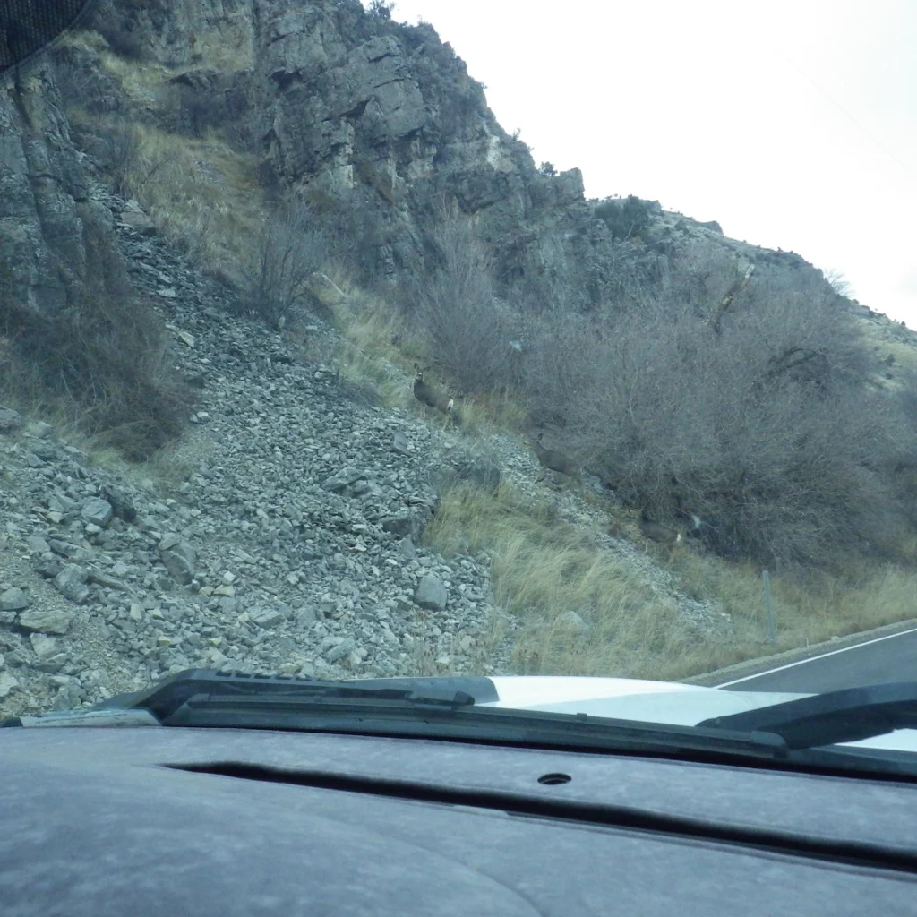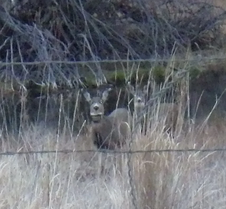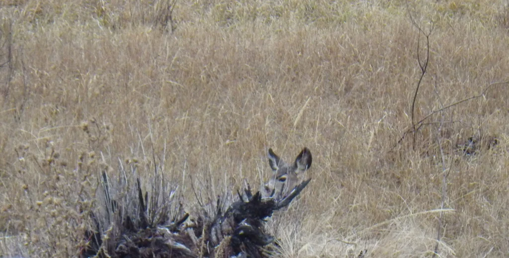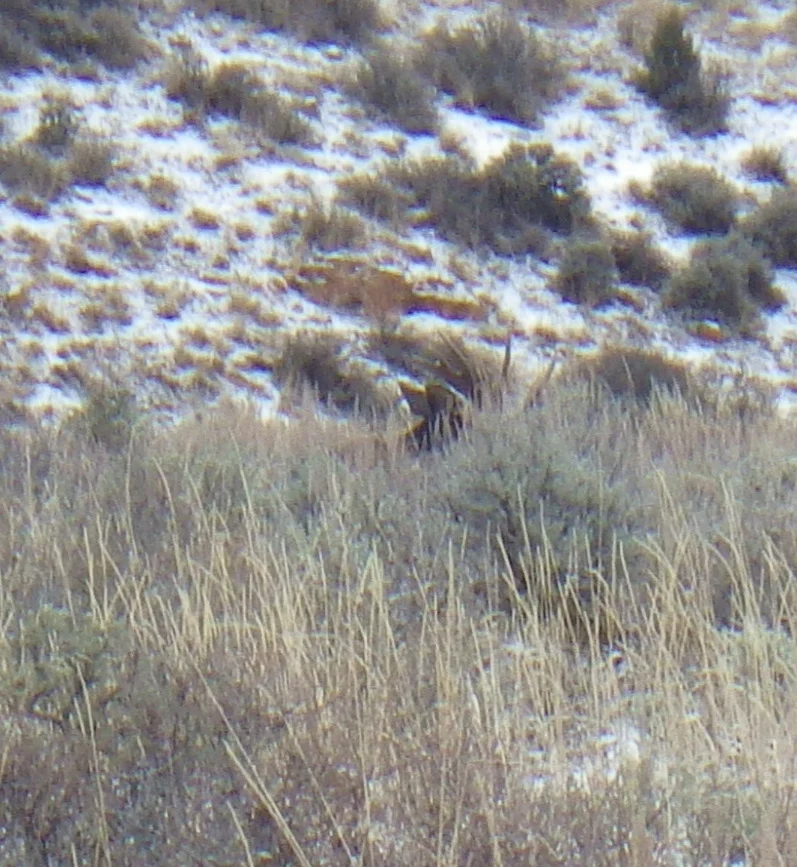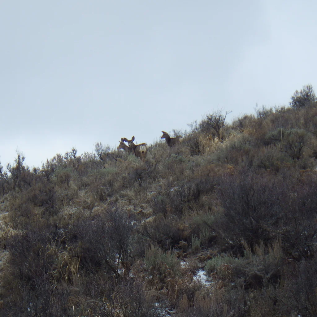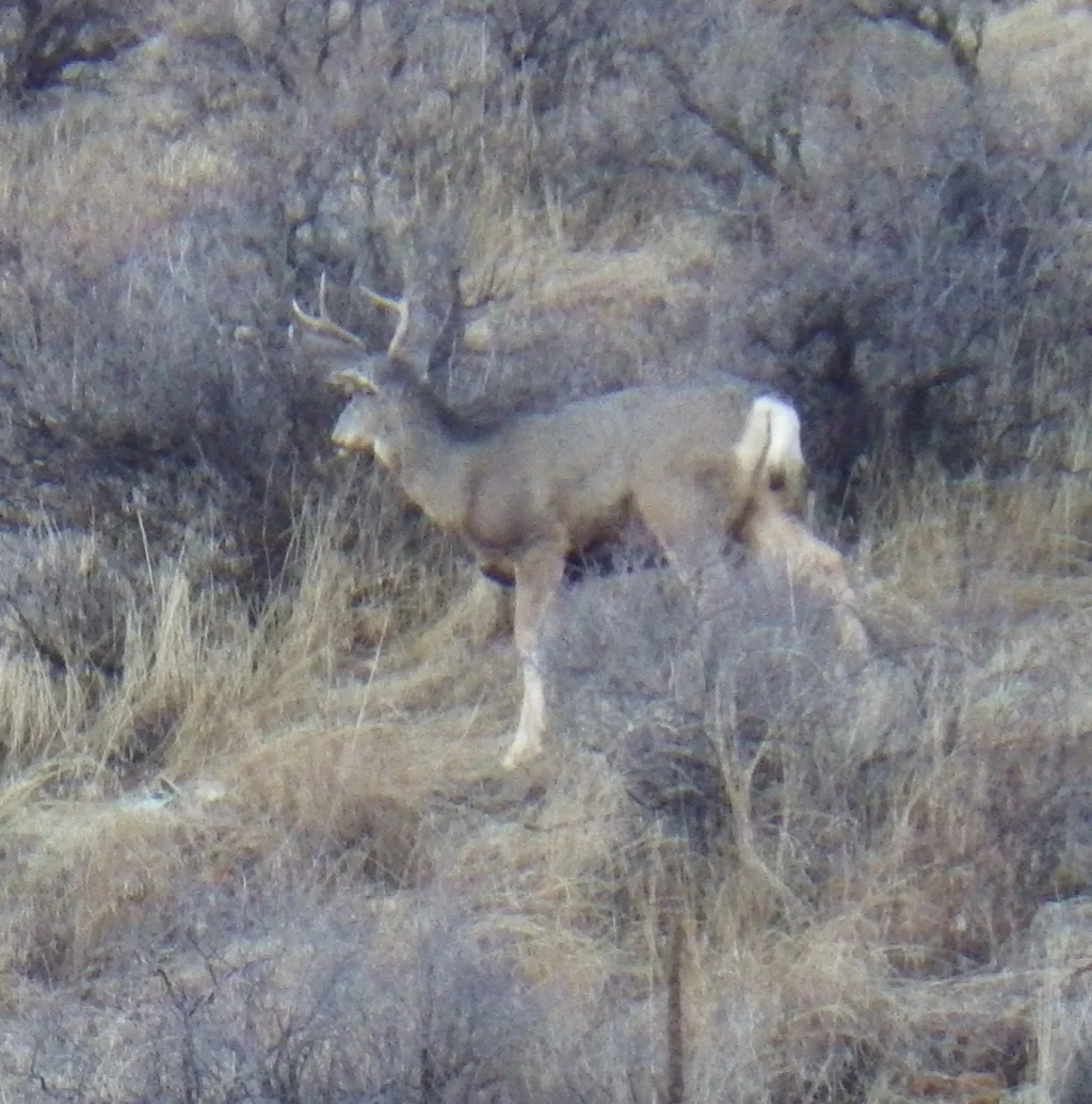 A very tall 3 point. We both thought it strange that the number of deer we were seeing just wasn’t what it was last week. Did they migrate on through? Were they just not near the road? Were they just laying in the tall grass and sage? Whatever the reason the deer just were not as plentiful as we saw last week. None the less, we did see a couple bucks.