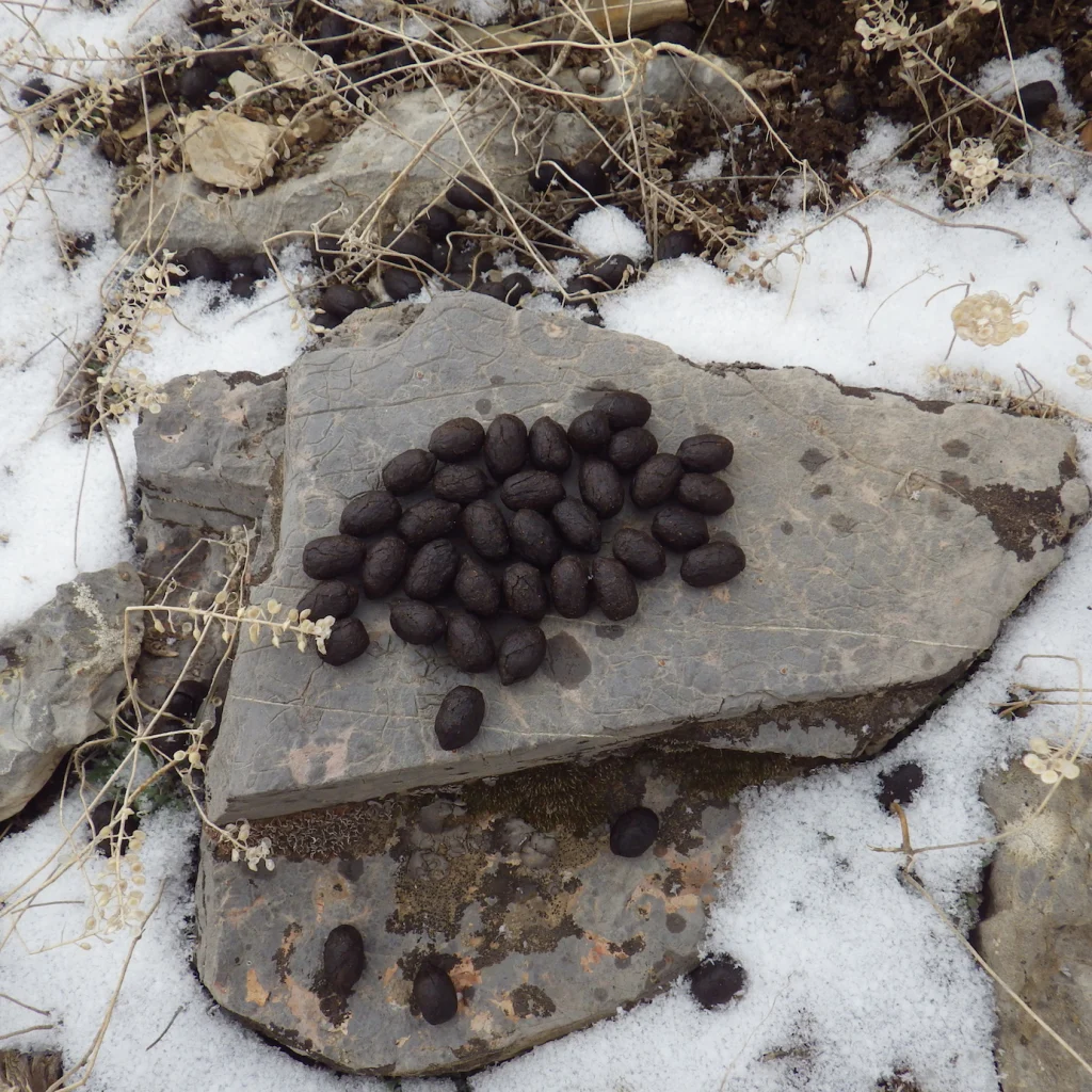 Back down and through the Switchies, the weather was much different. Very little wind, no snow and it was much warmer…still glad I had all my warm stuff on though. We took a little detour and then a short walk to look over the edge of the steep rock cliffs in search of bucks and bulls, but mostly what we saw was a deer that had pooped on a flat rock! We didn’t see the deer only the evidence it left.
