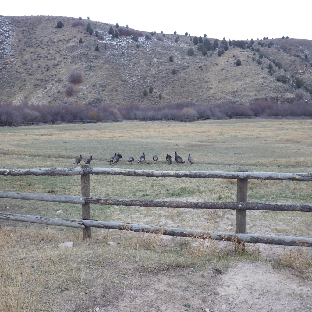 We couldn’t stop to take pictures of all of them but there were plenty to keep our attention. And when we arrived at the Hardware Ranch, the turkeys were ubiquitous [you-bick-quit-us] (seemingly everywhere at the same time).