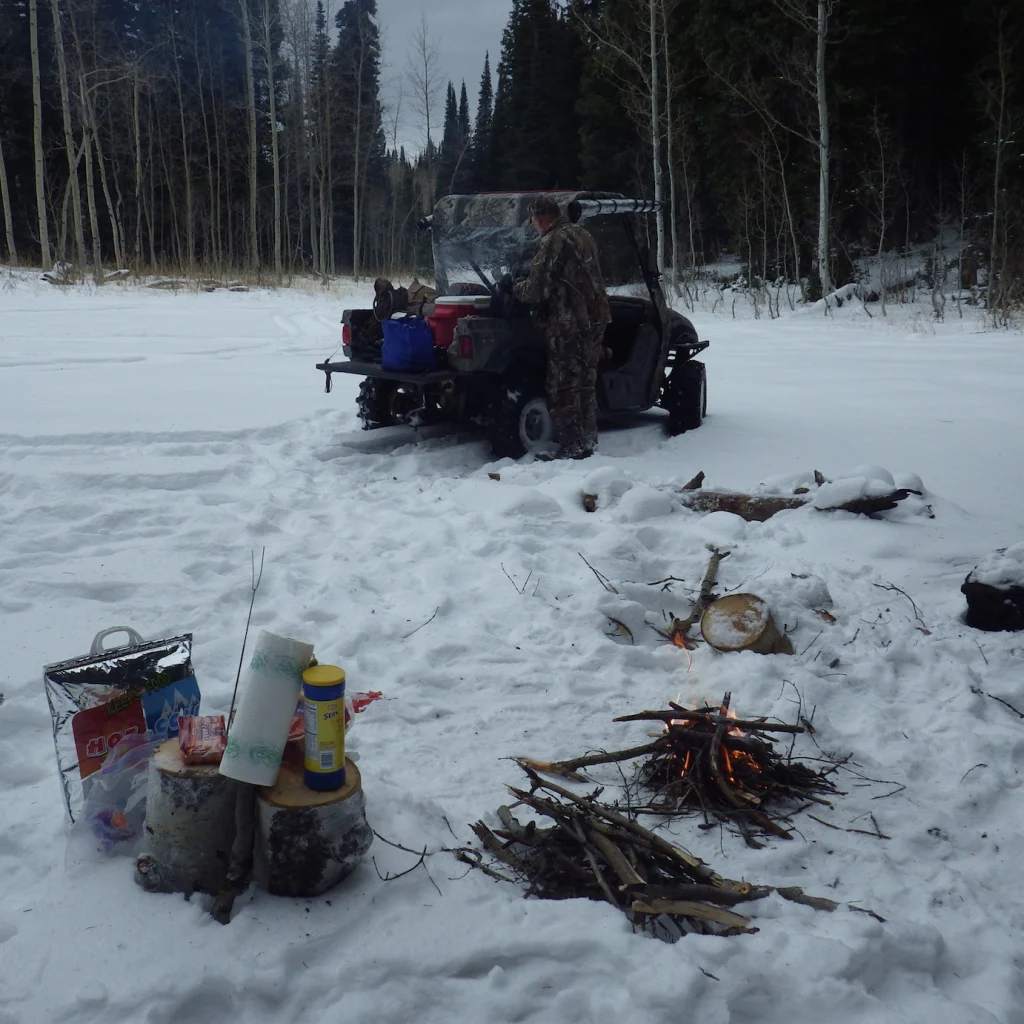 So, not knowing exactly how to pack, I’m probably over packed for cold. Backpack full of water and goodies and of course some emergency stuff just in case. Snow boots as well as regular hiking boots. Insulated bib cover alls, the kind I use ice fishing. Capote and warm gloves and lots of assorted other warm clothing. I’m also packing my 17, just in case we see a coyote that needs to be dead.