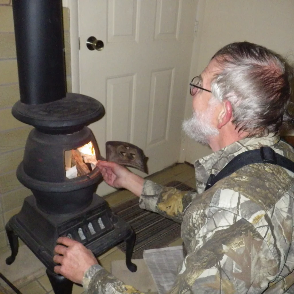 Back at the cabin the sun was down and it was getting cold…I mean COLD! So, Tracker went to making a good fire in the cabin fireplace.