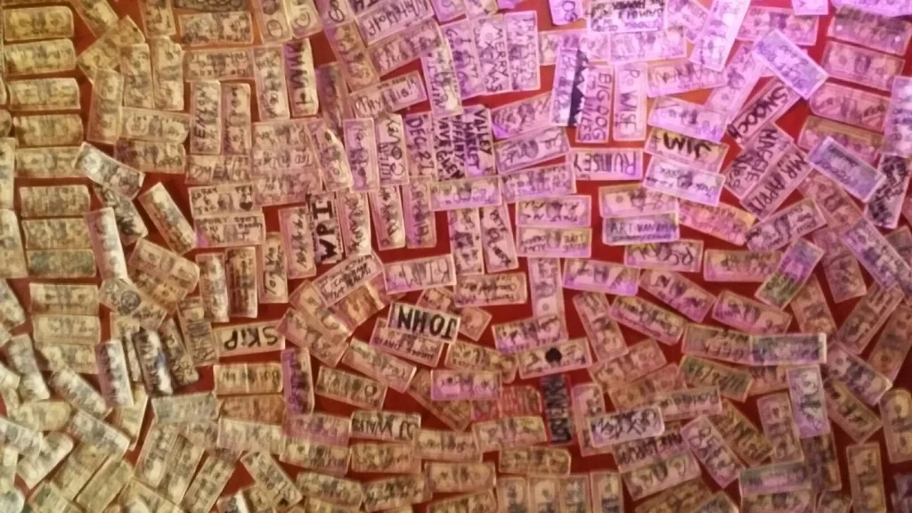 In this second picture are several dollar bills that read (one word per dollar bill)….Heather, I love you, will you marry me?…..I don’t know if Heather has ever seen this but I suspect when she woke up from the night before party, she could read it clearly. If they in fact did get married I hope they have been happy ever since!