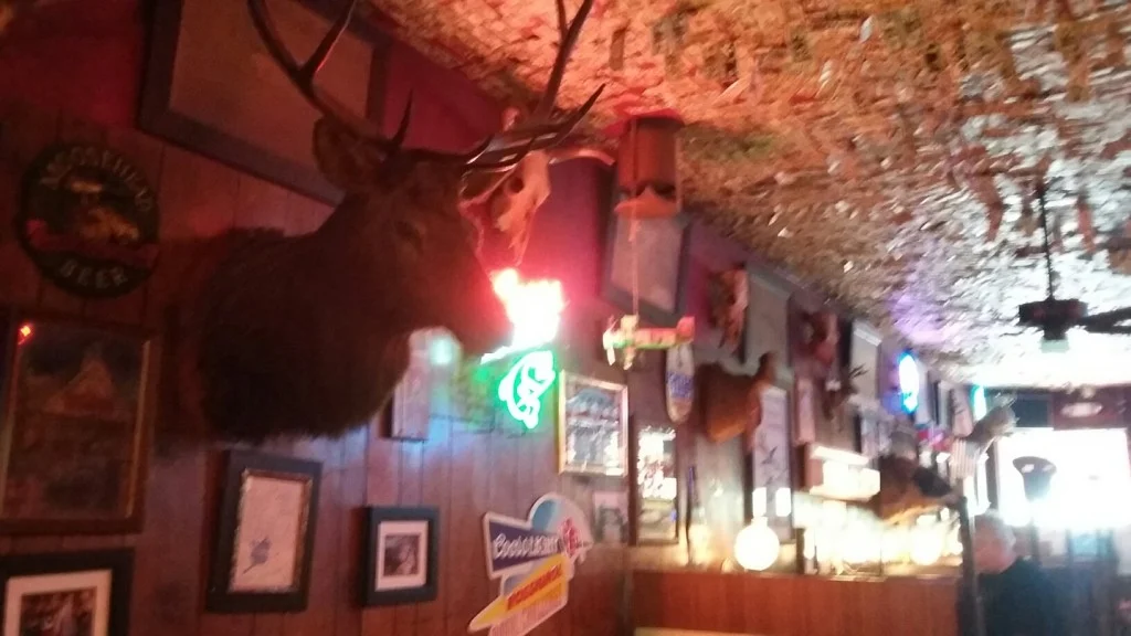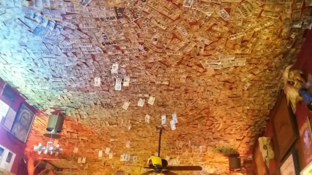 And that is just the walls! I didn’t take what was probably the most famous of all of the mounts on the wall, and that just gives me a reason to go back. They had a mascot dog (I’m not into breeds of dogs, but I think it was one of those you see with a beer keg under its neck) and when it passed away, they had a shoulder mount made of it and it was hanging above our table. Another very interesting thing is the ceiling!