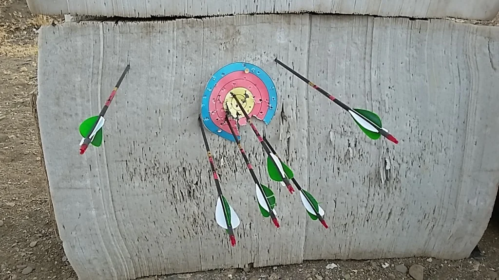 I practiced pretty regularly every other evening, shooting mostly from the 30 yard mark and shooting about 100 arrows a time. Always being pushed to practice by Weasel. If the weather was too hot or windy or whatever, I would practice standing out in the street and shooting into a bale in the back of the garage. 25 yards was about as far back as I could go which is still good practice. I can’t say I didn’t have some arrant arrows that caused a hole or two in the sheetrock and you have probably read about my ruining 3 brand new arrows when I tried to shoot from across the street at closer to 30 yards and smashed into the backside of the bricks. So, most of my practice sessions were pretty good and when Sherry would ask me about my session, my comment usually was, “a deer or elk is going to be in trouble”…My confidence level continued to rise with each practice session and I owe it all to the Fixed Crawl method of shooting. It is now my “form” of shooting and all my backup strings are set the same way.