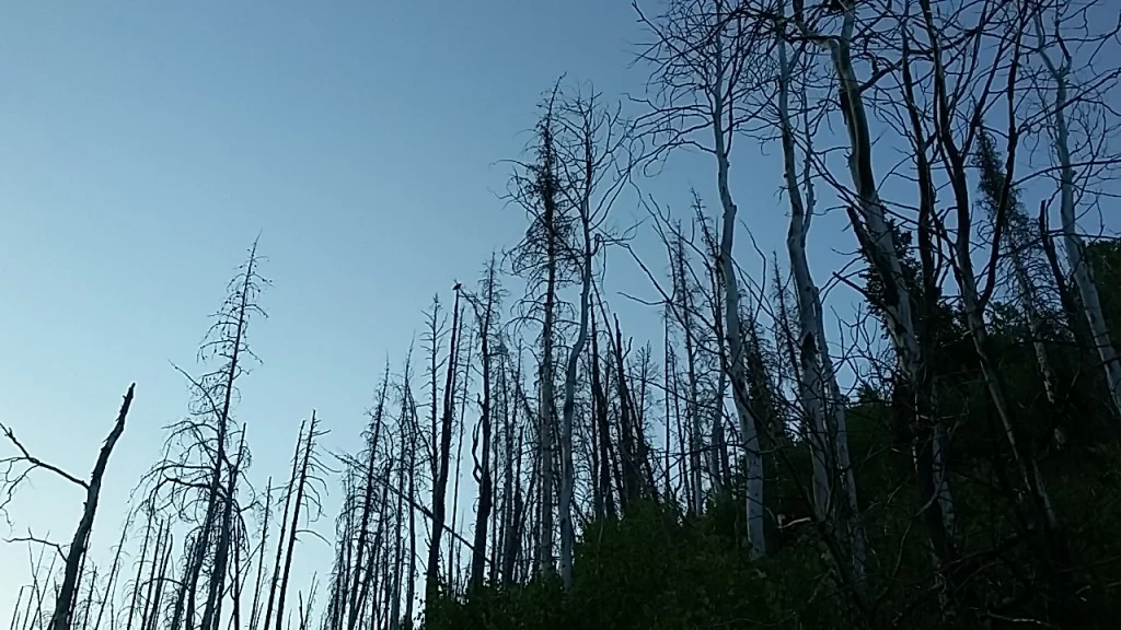 As for the evenings, as hot and dry as it has been all summer and the fact that water is at a premium up in the woods, we decided we would find a water hole or two and sit in an area close to it until dark. Our hopes were for a big buck or a spike/cow elk to come in while there was still enough light to get a shot. Spot and stock in the morning, rest back in camp during the heat of the day and then sit on a water hole in the evening. I think 90 percent of the hunters on the mountain did that same routine and so, we probably shared some of the water holes with others and didn’t even know it.