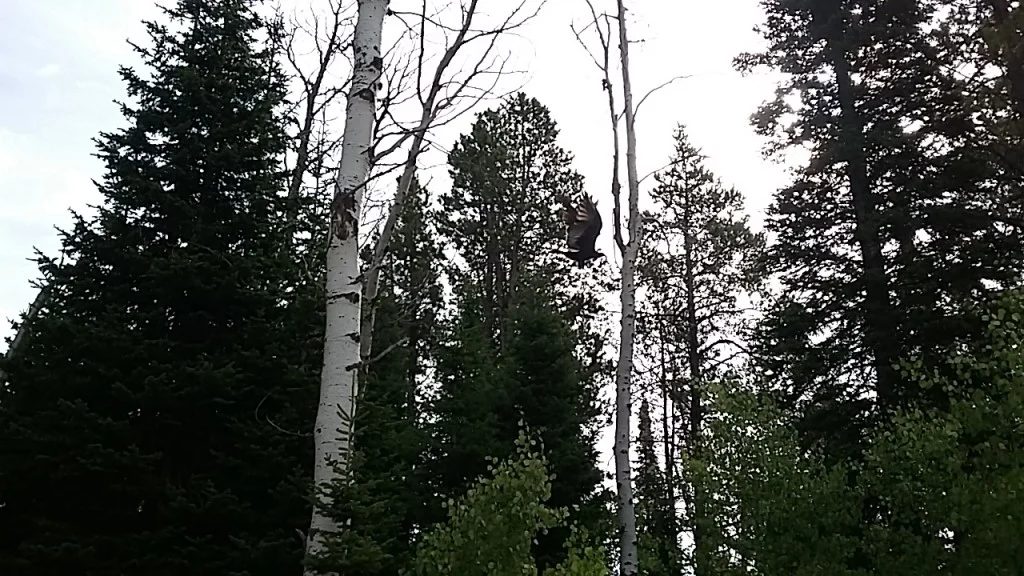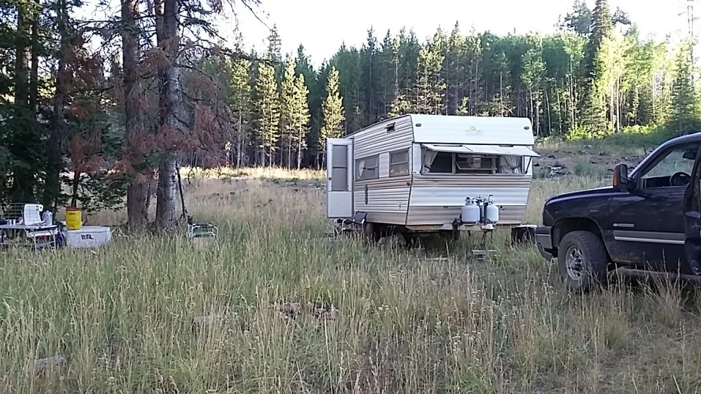 August 20 was the big day…the opening of the Utah archery deer hunt season…it seemed like it would never get here. On the 19th, Weasel and I were headed for the mountain. Our camp choice was already made and we camped in the shade of a big stand of pines that towered 70 or more feet above us.