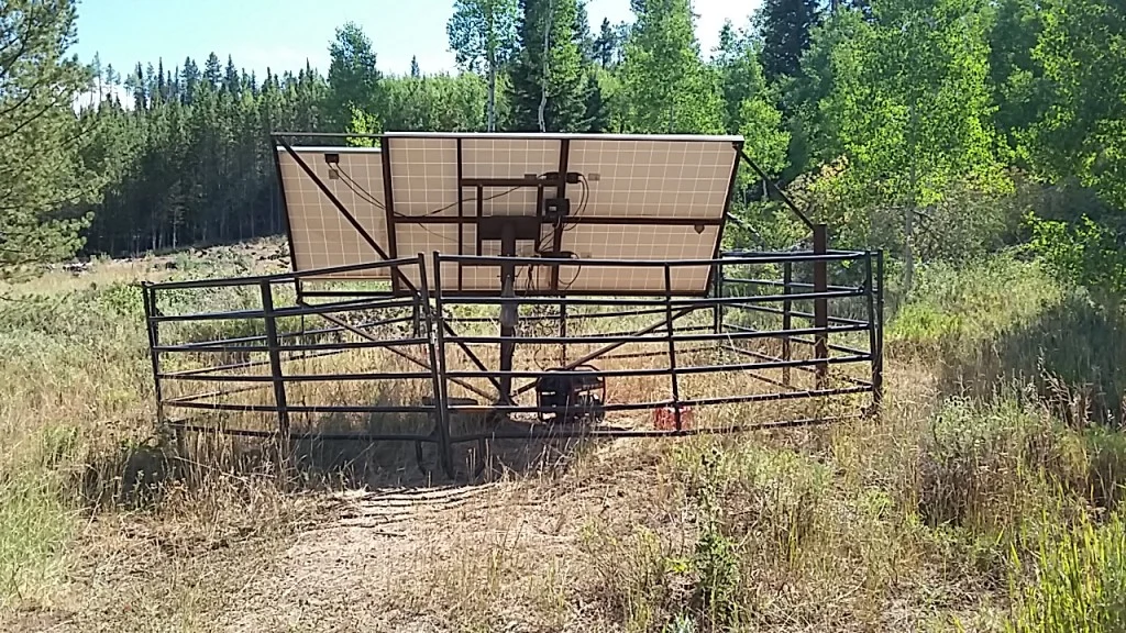 They were very happy to have us do that and it would save them having to make a trip from town up to the generator and starting it each evening. Besides the time, there was the factor of gas for the vehicle to get them up there and the extra gas to run the generator while the solar panel was working. During the course of our hunt we learned quite a bit about their water system. A bunch of money, time and labor has been put into it and it works very well. At least until the generator breaks, which happened on the second Friday we were there. Fortunately, before the generator quit working all the guzzlers in the system were full of fresh clear clean water. The solar powered pump should be able to continue to keep them full until they have to move the cattle off the mountain.