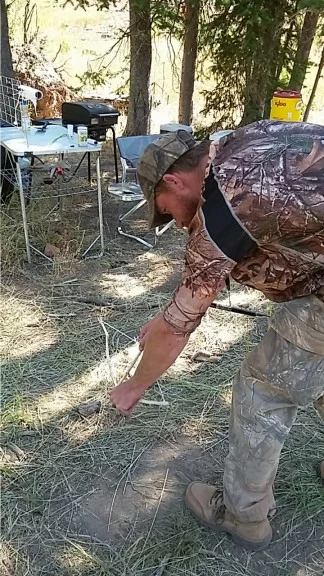 The author used a Samick Journey take down bow measuring 64 inches from tip to tip, with 55 pound limbs, Lynn Hayes custom turkey feather rest, a 3 Rivers custom made Flemish twist bow string, yarn found in my wife’s hobby drawer, Gold Tip Kinetic arrows, cut to 29 1/2 inches and weighing 7.4 gpi, 4 inch parabolic cut right wing fletching feathers mounted using a Bitzenburger jig at right helical and Bohning fletching tape. The broad heads are made by Badger Broad heads and were at 125 grains and single right bevel, nocks by Burt Coyote “Lumenock” in red color. Chevy trucks, Prowler trailers, Goodyear tires, Rogers eggs, Kroger (Smiths) orange juice, Olympia beer, Keystone lite beer, V-8 Juice, Folgers (that’s what is says on the can) Coffee, Aero Aluminum Coffee pot, Badlands packs, Motorola two way radios, Great Value Spam, Echo chain saws, Maverik Gas, Diamond “strike on the box” matches, Kroger 2 ply toilet paper, Willard City Utah water, Luci brand solar light system, Fox Valley Tannery (out of business now), Kings pattern camo, Under Armour, Altra running shoes, Bushnell binoculars, Nikon range finders, Colman sleeping bags, Hone Propane, Big Buy bacon, Kroger Texas Garlic Toast, Camp Chef (the way to cook outdoors), Arm and Hammer Baking Soda, Crystal ice, Igloo and Colman outdoor products, Ace Hardware motor oil, The Randolph Woodruff area cattle ranchers, USFS, BLM, Utah State University, Utah DWR, Smith and Edwards, Richard Green’s donation of moose steak, High Country Twisted Trail 3 pepper jerky mix, Necco dehydrators, Zip Lock bags, Gerber, Samsung, Energizer batteries, Nikon, T-Mobil and finally Maytag Freezers.