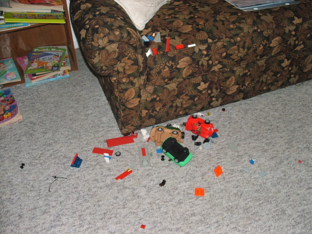 After lunch, the youngest, age 3, Chase, went into the play room where his “cars” are all placed and began playing by himself. This is a normal thing for him to do. He spends hours and hours in there playing with his cars. There are legos in there as well and he likes building things, especially air planes. He obviously had built one to his specifications and was playing with it and the cars.
