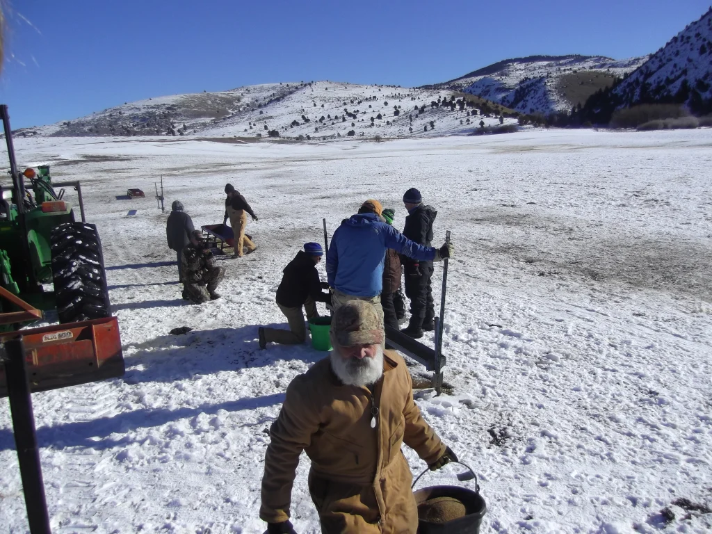 By 1 p.m I ‘m on the ice with them and they have a BUNCH of fish laying there. KEEPERS! And all bluegills! Half the size of dinner plates. I have not seen bluegills so big in a long time. I’m excited to get into the water and they have drilled a hole and cleaned it for me…I told them they only invited my for my quarters. And was quickly told there was not any betting going on, just fish catching. Too fast of action!