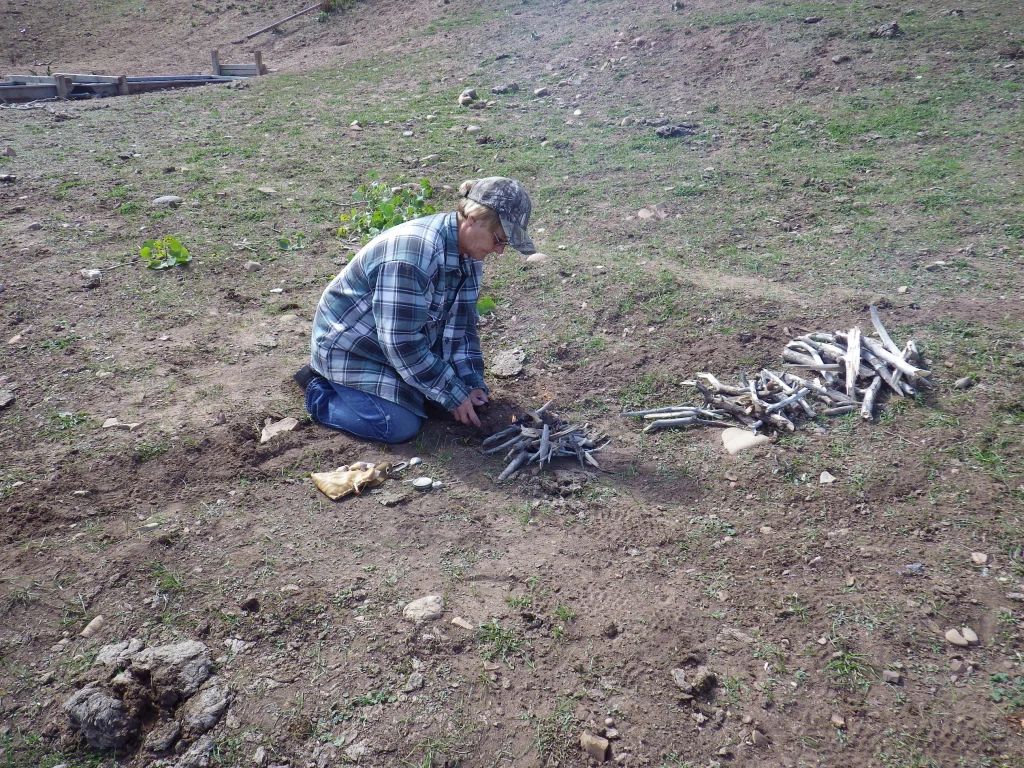 Bones had to start the fire and she insisted on a flint and steel one and she got it going really quick!