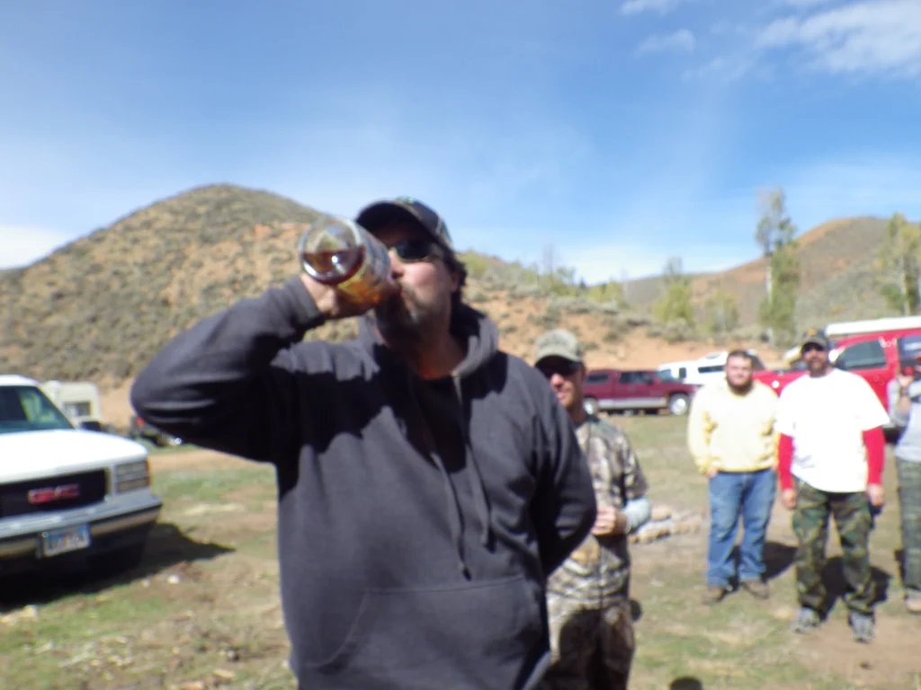 On our way down from near the top of the main road, we came around a bend and there were two bucks feeding just off the side. Weasel and I bailed out and prepared to shoot (of course making sure we were off the road and not shooting across it…legal like). Since I was driving I had to make sure the vehicle was in park and everything was good before I baled out. By the time I got my cap on the nipple, I looked up just in time to see Weasels well placed shot, go right over the top of one of the bucks! Miss!