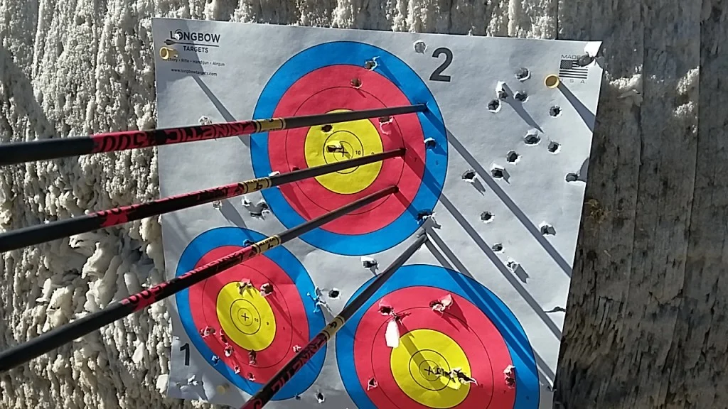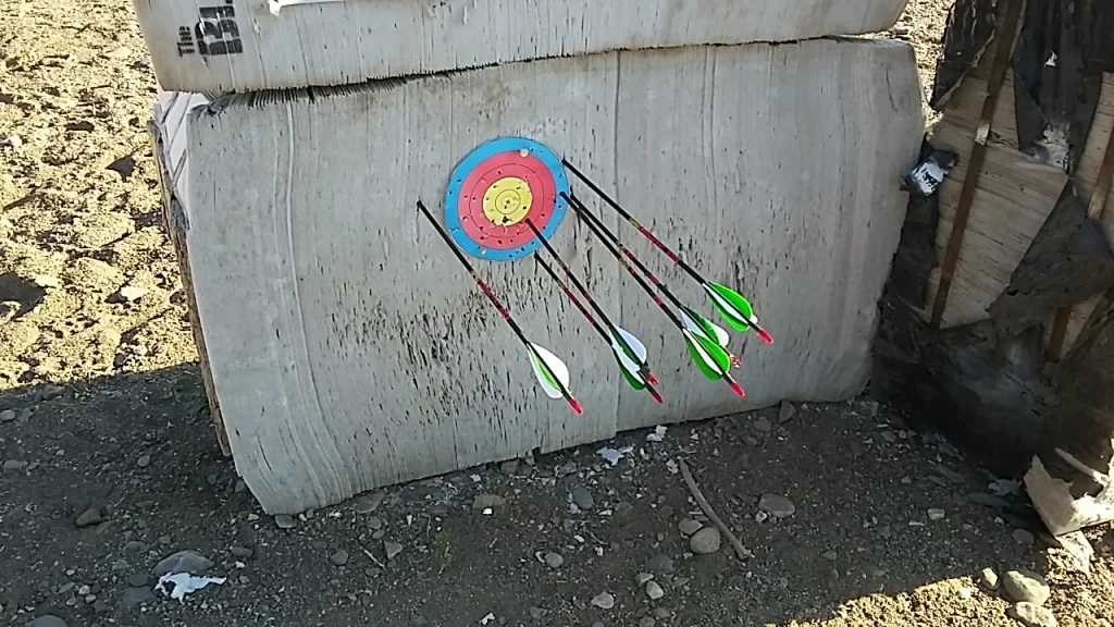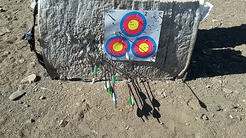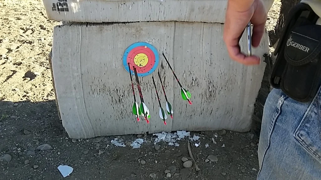 Well, earlier this year, when it was time to apply for our big game tags, I had a decision to make.  Was I ready for a bow hunt?  I would have about 8 more months to prepare for that one shot.  Or should I apply for a muzzleloader tag like I have done the last 43 years?  It was a pretty big decision… to make the commitment to practice as much as possible and hone my archery skills.  I applied for the archery tag and was lucky enough to draw it.  From that point on it was “sweat time”.  Practicing in the field at 20 yards, then 25 yards and finally out to 30 yards.  I felt pretty confident at 20 but move back 5 yards and the arrows just didn’t seem to be consistent to me.  Well, they were consistent in that they went where they wanted most of the time and not where I wanted them to go.  And then I watched a video by Matt Dernzack called “The Push”.  He suggested that hunters using traditional equipment should prepare themselves for a 25 yard shot using a combination method of string walking and gap shooting, he called it “Fixed Crawl”.  I tried it, set up my bow for it and never looked back.   I place my nock against the side of my nose when I anchor, look basically down the arrow and place the point of the tip on the mark I want to hit and then release.  If my target is at 20 yards I put the point a little lower than where I want to hit.  At 30 yards I place it a little higher.