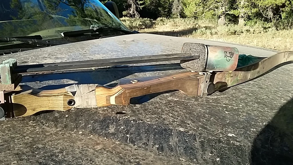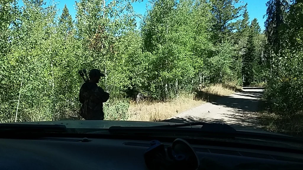 The author used a Samick Journey take down bow measuring 64 inches from tip to tip, with 55 pound limbs, Lynn Hayes custom turkey feather rest, a 3 Rivers custom made Flemish twist bow string, yarn found in my wife’s hobby drawer, Gold Tip Kinetic arrows, cut to 29 1/2 inches and weighing 7.4 gpi, 4 inch parabolic cut right wing fletching feathers mounted using a Bitzenburger jig at right helical and Bohning fletching tape.  The broad heads are made by Badger Broad heads and were at 125 grains and single right bevel, nocks by Burt Coyote “Lumenock” in red color.  Chevy trucks, Prowler trailers, Goodyear tires, Rogers eggs, Kroger (Smiths) orange juice, Olympia beer, Keystone lite beer, V-8 Juice, Folgers (that’s what is says on the can) Coffee, Aero Aluminum Coffee pot, Badlands packs, Motorola two way radios,  Great Value Spam, Echo chain saws, Maverik Gas, Diamond “strike on the box” matches, Kroger 2 ply toilet paper, Willard City Utah water, Luci brand solar light system, Fox Valley Tannery (out of business now), Kings pattern camo, Under Armour, Altra running shoes, Bushnell binoculars, Nikon range finders, Colman sleeping bags, Hone Propane, Big Buy bacon, Kroger Texas Garlic Toast, Camp Chef (the way to cook outdoors), Arm and Hammer Baking Soda, Crystal ice, Igloo and Colman outdoor products, Ace Hardware motor oil, The Randolph Woodruff area cattle ranchers, USFS, BLM, Utah State University, Utah DWR, Smith and Edwards, Richard Green’s donation of moose steak, High Country Twisted Trail 3 pepper jerky mix, Necco dehydrators, Zip Lock bags, Gerber, Samsung, Energizer batteries, Nikon, T-Mobil and finally Maytag Freezers.