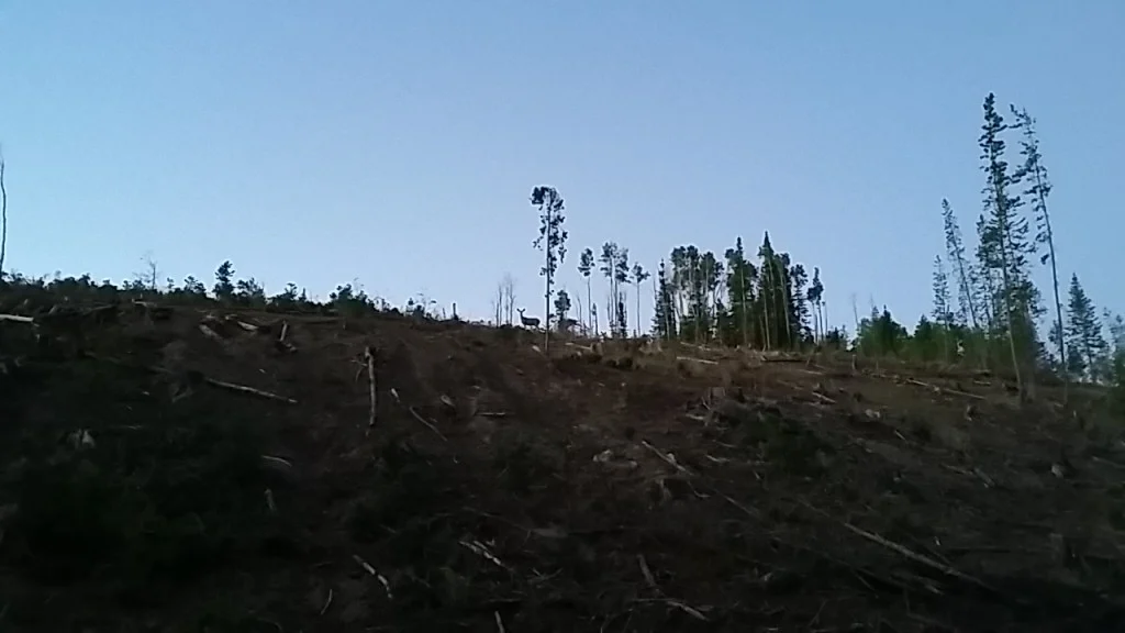 One morning Weasel and I were just about back to our camp from an enjoyable morning of spotting but no stocking, when suddenly we rounded a bend and there stood a big old buck!  Weasel was the first to see it and excitedly told me to get out and grab my bow…it’s a buck!  Following the routine, I eased out of the truck and grabbed my bow.  I stepped off the road and began a slow sneak to where I thought the buck was standing.  I had not seen it yet.  As I came to a spot on a small rise I could see the buck broadside looking to my right.  I slowly lifted my range finder and pressed the button, 28 yards.  My heart was pounding pretty good at this time and my eyes shifted from side to side making sure there were no branches or obstructions between me and the buck.  Nothing stood out as a problem.  With the buck still standing there, I drew to full anchor, found my mark on the bucks shoulder and released the arrow.