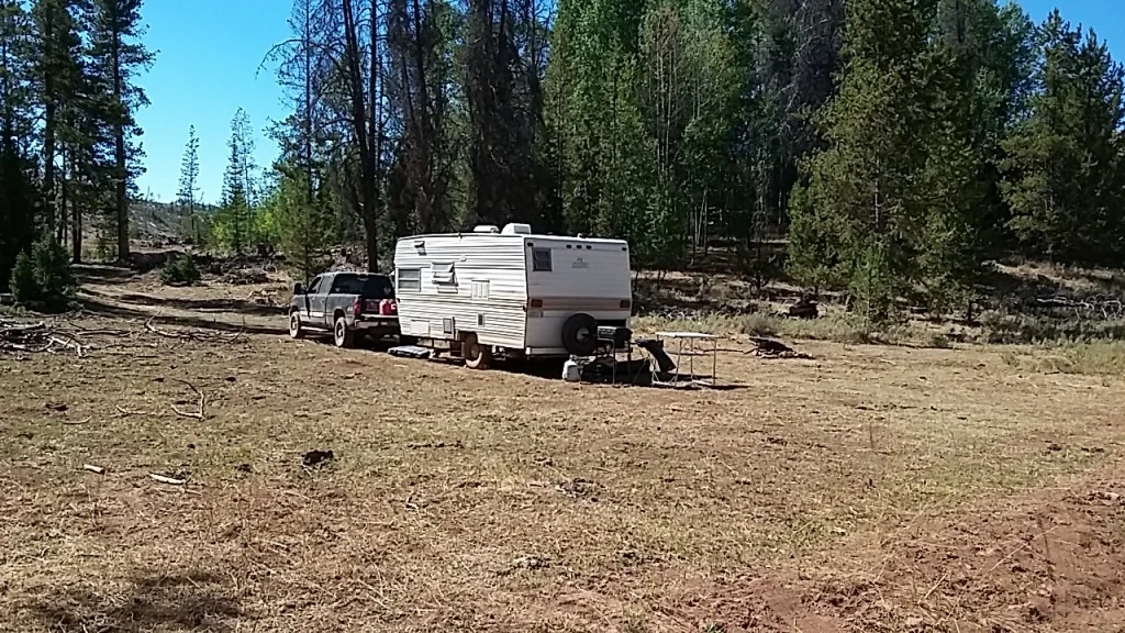 August 20 was the big day…the opening of the Utah archery deer hunt season…it seemed like it would never get here.  On the 19th, Weasel and I were headed for the mountain.  Our camp choice was already made and we camped in the shade of a big stand of pines that towered 70 or more feet above us.