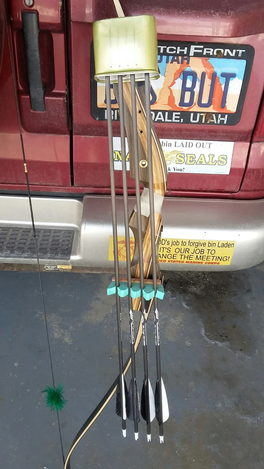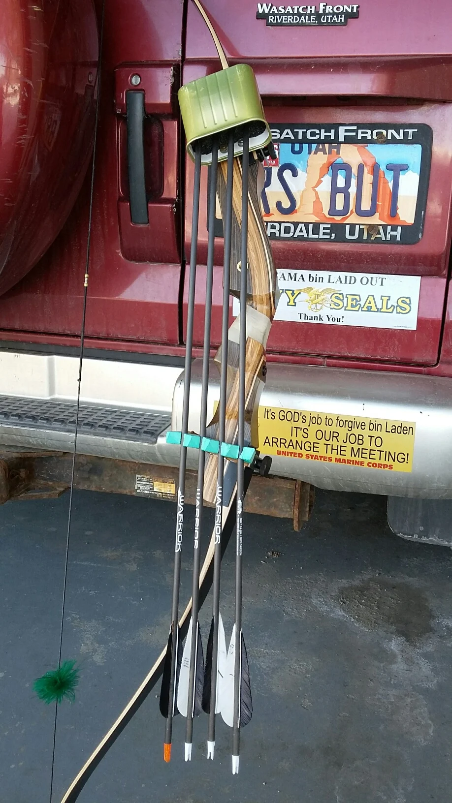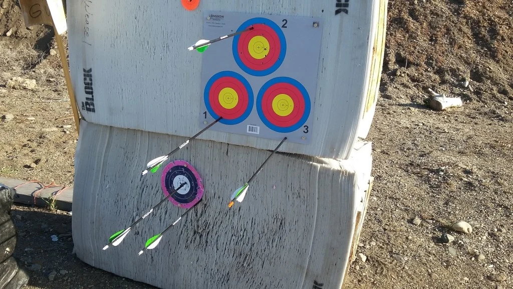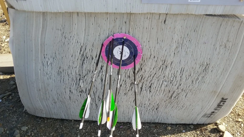 Well, during the course of the day, I shot at one target and when I pulled the arrow out of my perfectly placed shot (somewhere near the foot of the animal target) the whole insert and point came out of the arrow shaft…poor glue is the culprit. So, now I’m down to two sacrificial arrows and a whole lot more targets to go. I put that arrow in my quiver where I would know not to draw it out to shoot it, and saved the insert and point to later glue it back into the shaft.